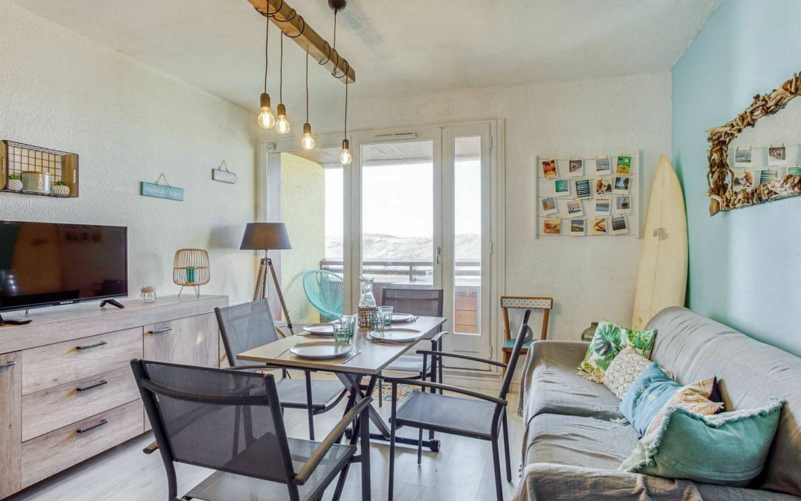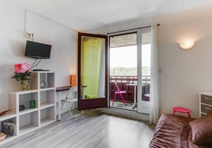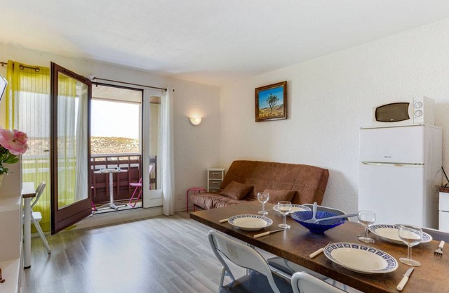 You will be staying in a 1-room apartment that is 30 square meters in size, located on the 4th floor. The apartment is suitable for a maximum of 2 adults and 2 children. The living/dining room features a double sofa bed (140 cm wide and 190 cm long) and a flat-screen TV. It also has an exit leading to a balcony. Additionally, there is a small room measuring 4 square meters with a sliding door, equipped with 1 set of bunk beds (90 cm wide and 190 cm long).
