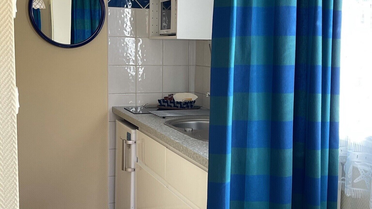 A 16 M2 bedroom, possibility of two 90 cm beds or 1 180 cm bed / sheets provided. There is a living room with a fully equipped kitchenette, a bathroom with WC and an outdoor terrace 3 meters by 3 meters, planted.
