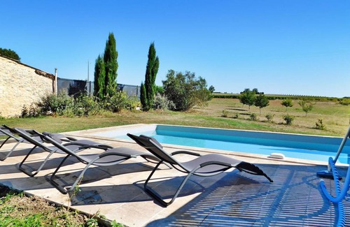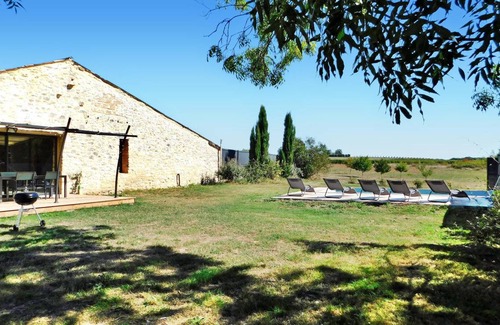 The holiday rental is located in a hamlet in the countryside, the village of Cunèges within 200 m. The property is located in the heart of the Bergerac vineyards, on the wine route with renowned appellation chateaux and wine cellars of Purple Perigord.