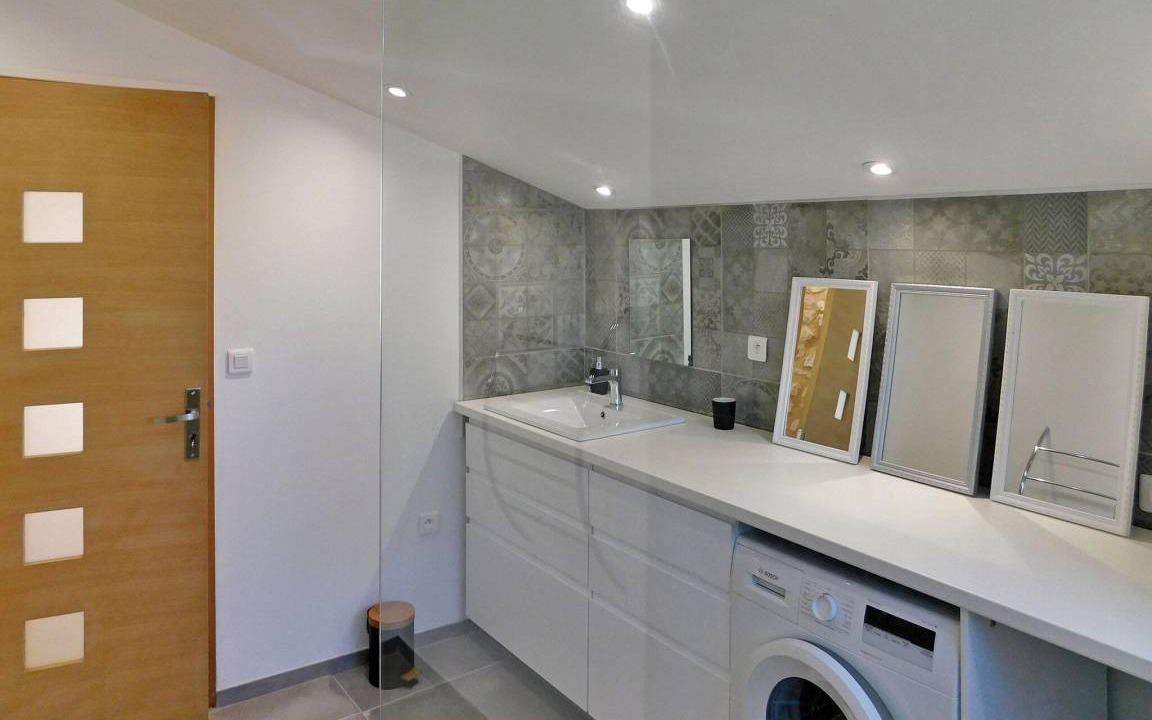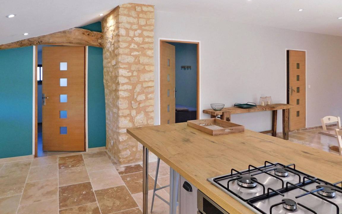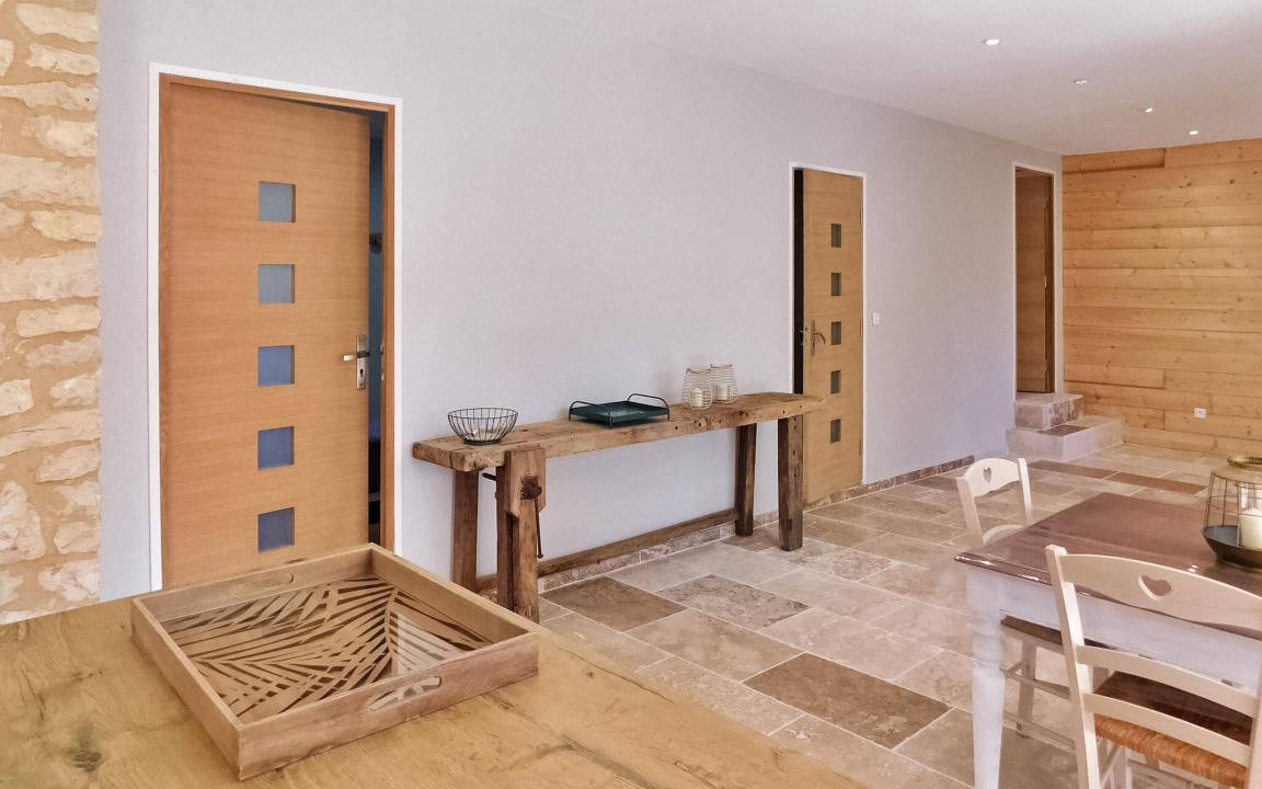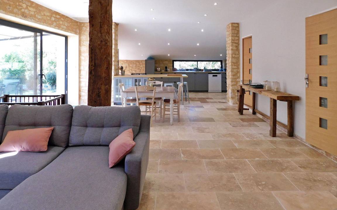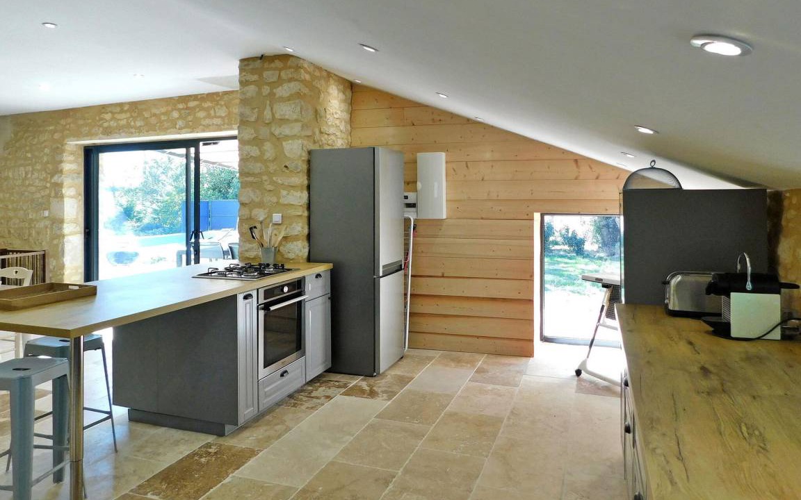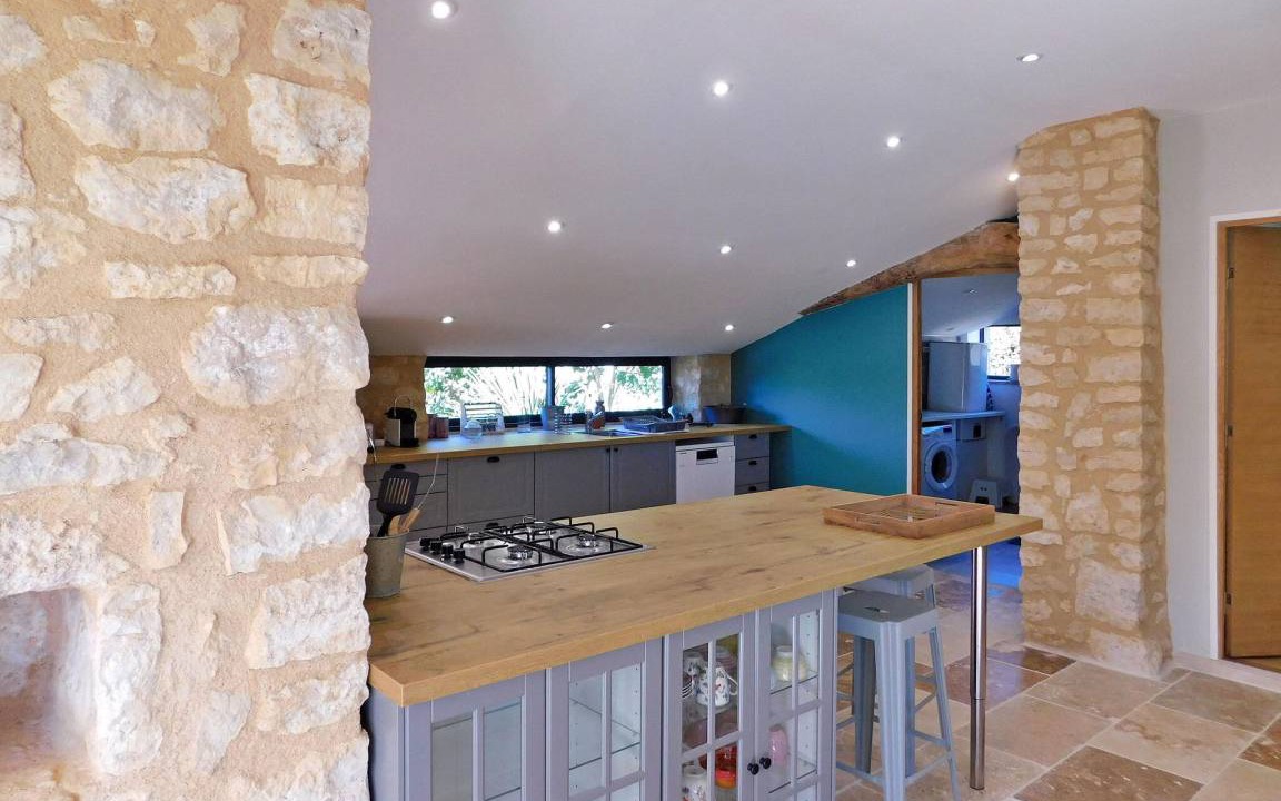 The holiday rental, nestled in a serene hamlet approximately 2 km from Cunèges village, offers a comfortable living space with air-conditioning. The property includes an amply spaced kitchen equipped with essential amenities, a dining area, and a cosy sitting area with comfy chaise longue sofa.