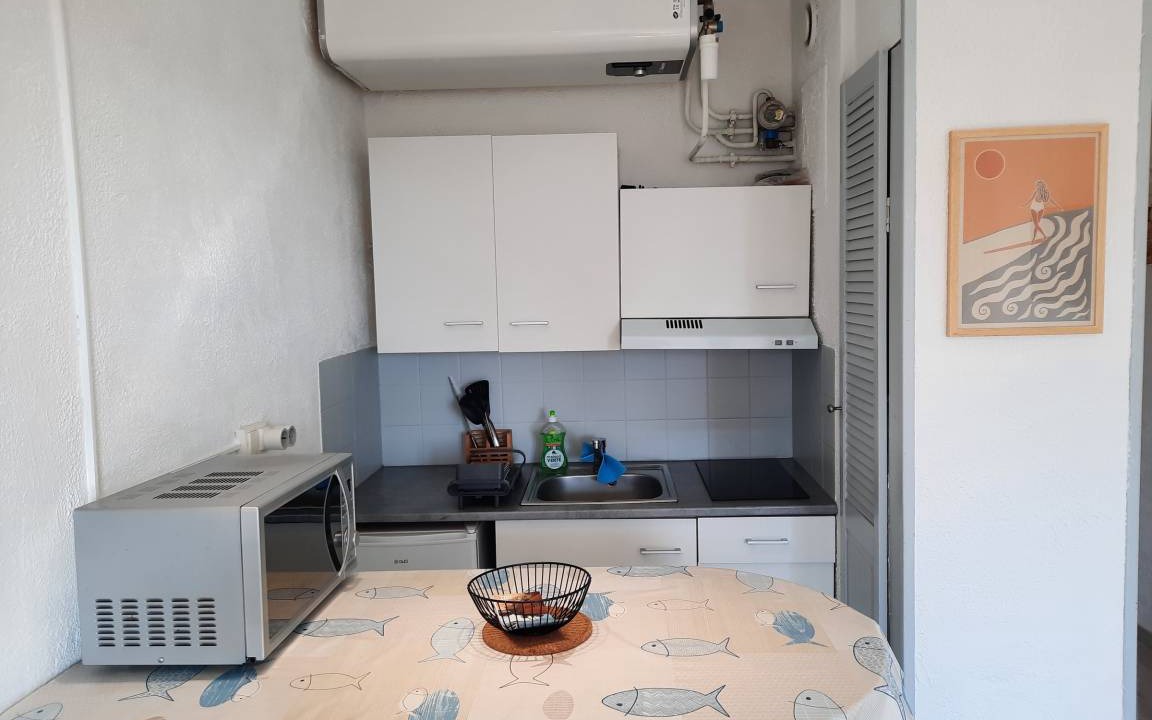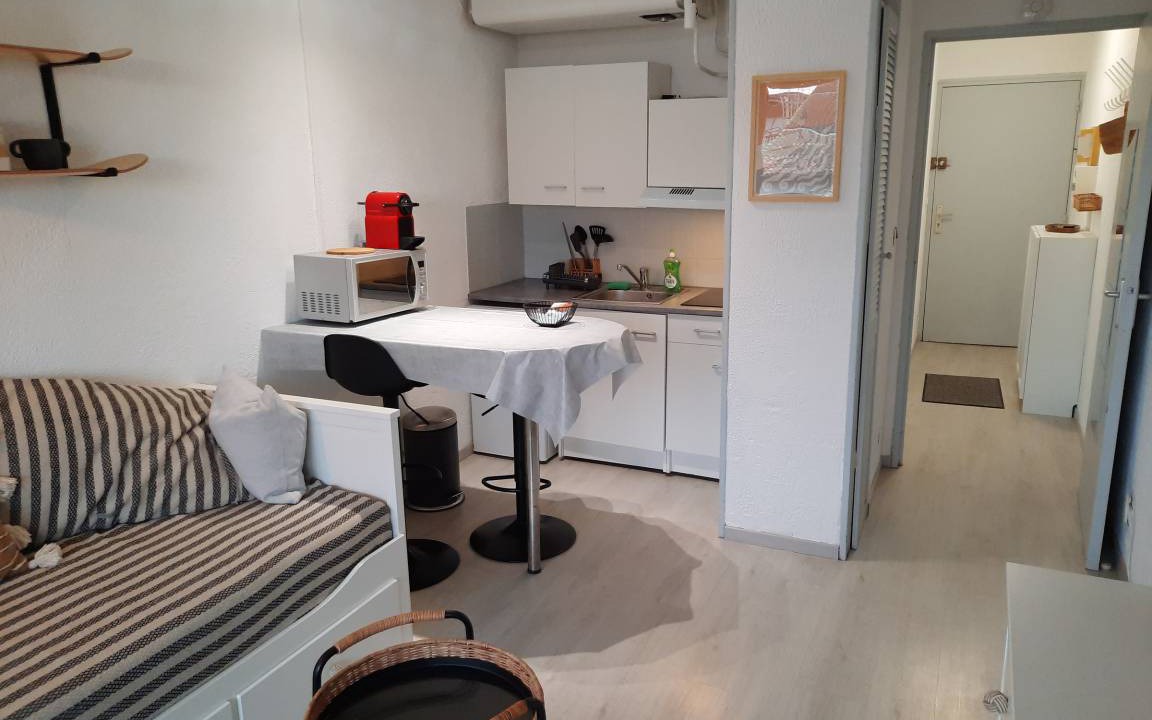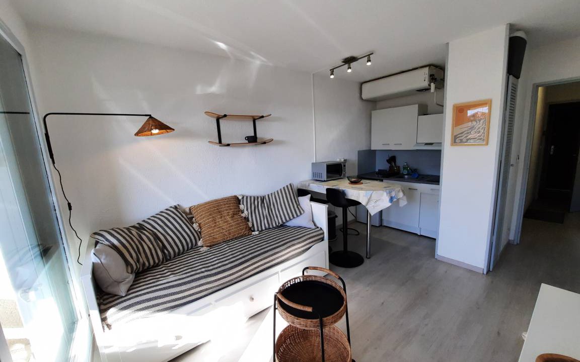 In Seignosse in the heart of the resort and at the foot of the Landes dune, pleasant renovated studio ideal for your vacation for 2 people. Located on the 3rd floor of a residence with elevator, it consists of a carefully decorated living room with a 160 cm sofa bed, opening onto a south-facing balcony. You will also discover an open equipped kitchen area and a bathroom. The apartment is non-smoking and pets are not allowed. Sheets and towels are not included in the price.