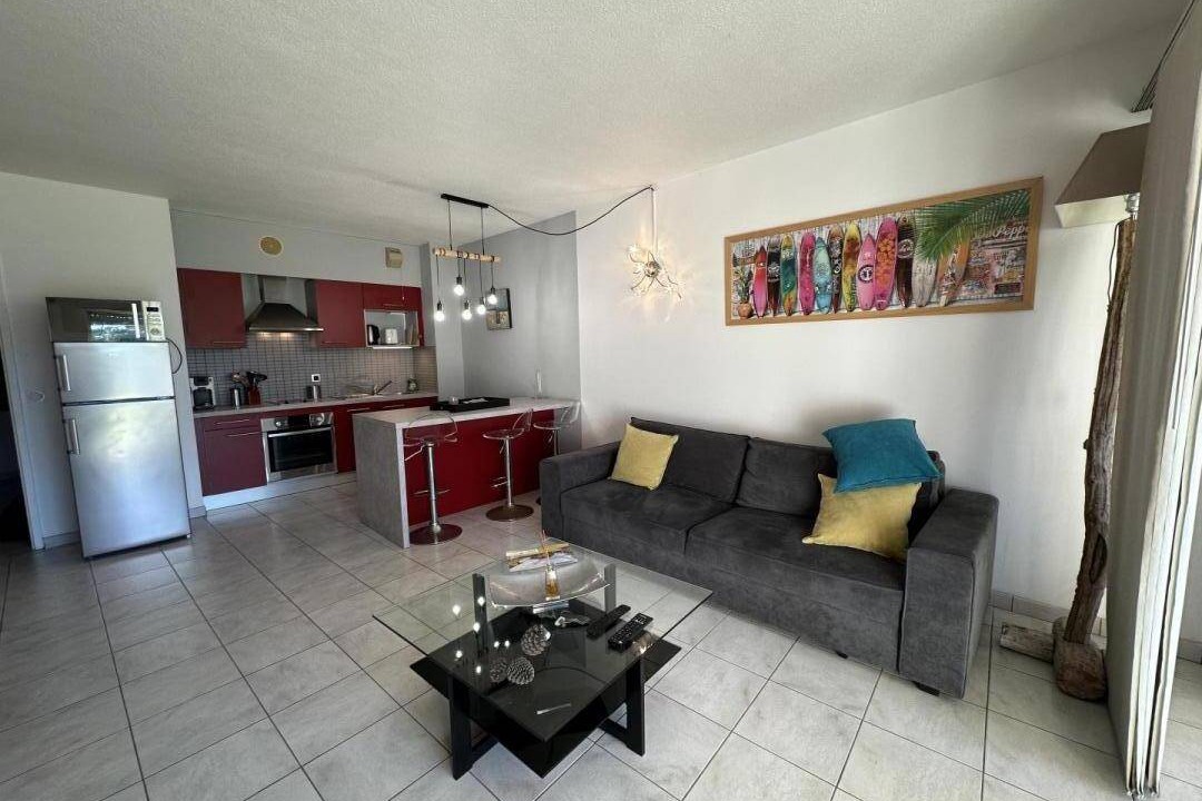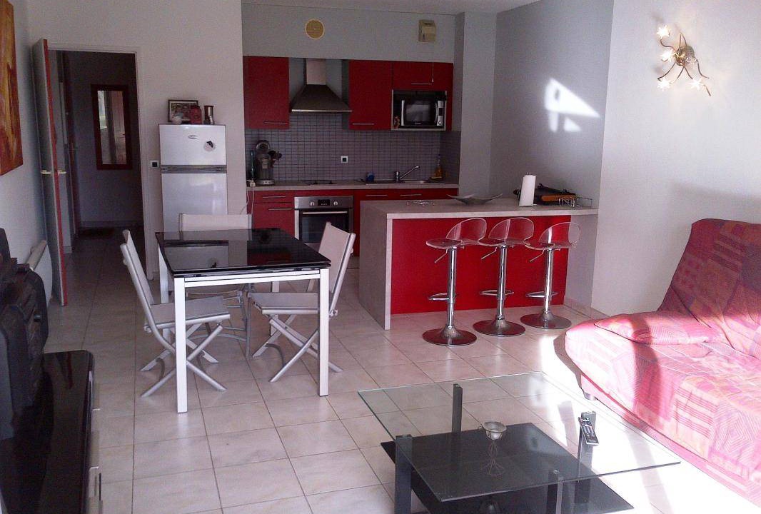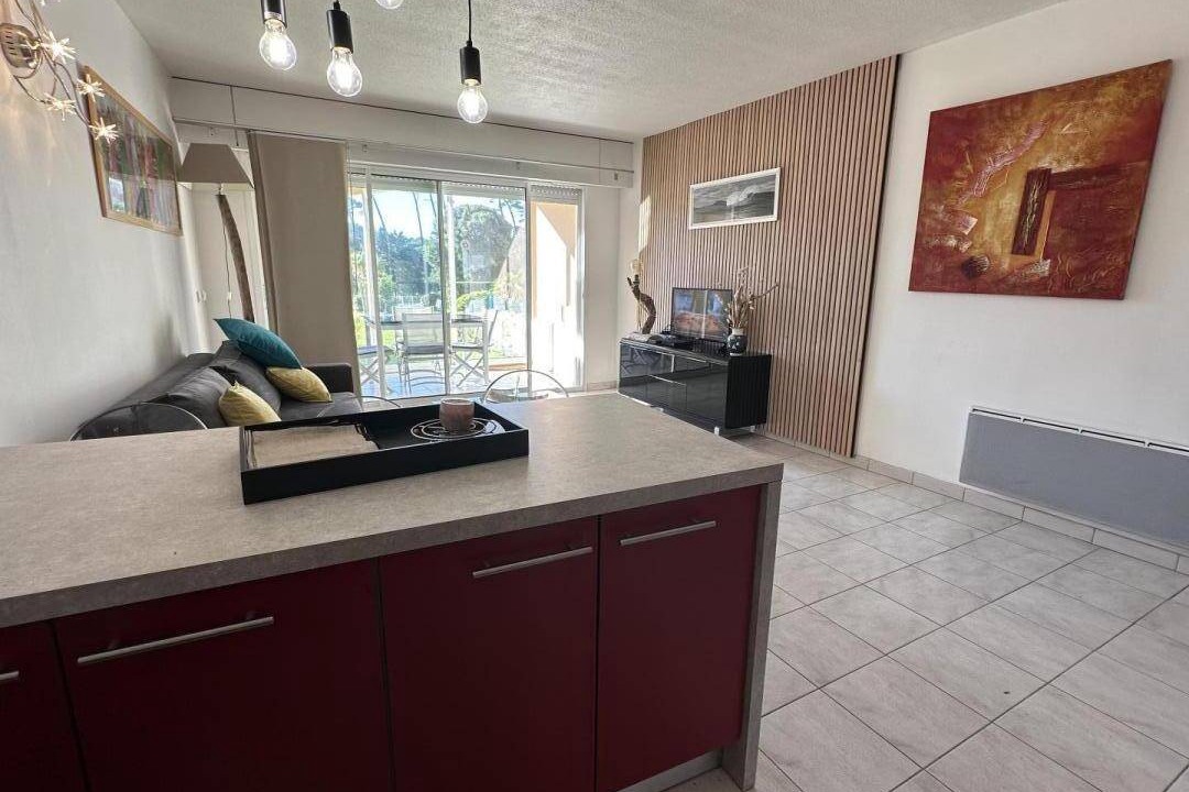 Located on the ground floor, this apartment, on one level, offers a living room with equipped kitchen, 1 bedroom (1 140 cm bed), a cabin bedroom (2 80 cm bunk beds), a bathroom, a toilet, veranda.