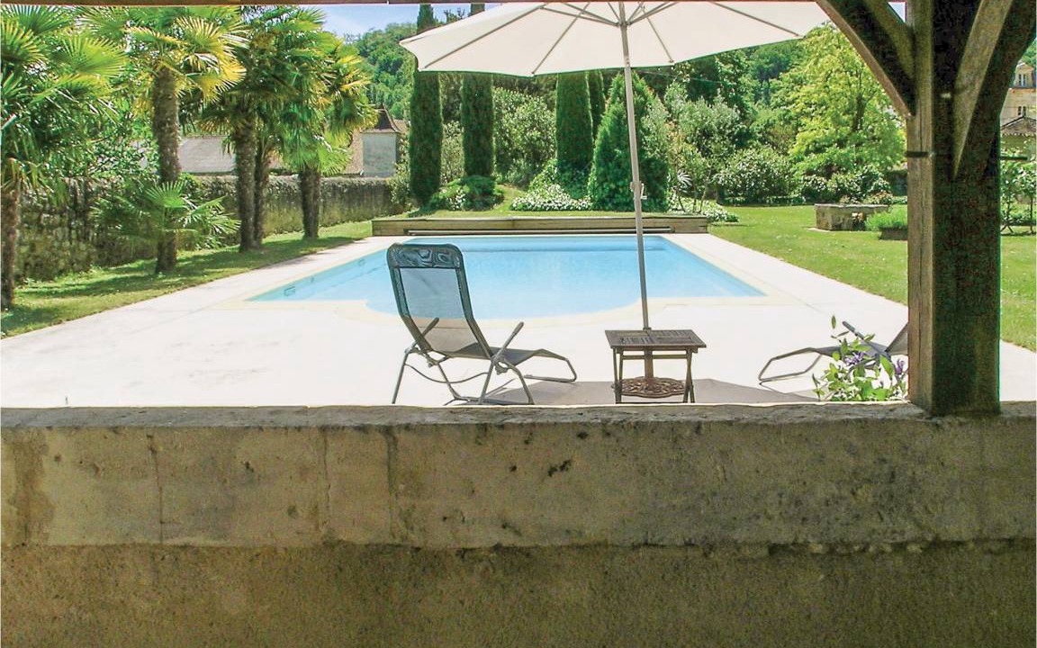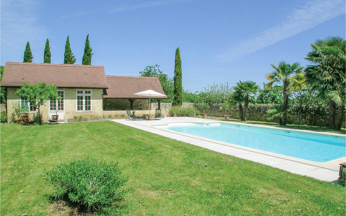 This independent and carefully renovated outbuilding on the owner's chateau estate welcomes its guests on the banks of the Dordogne. By the river, please pay special attention to your children. Through its own enclosed garden area with pool, you have access to the extensive orchards that belong to the estate. In the flowery garden, a poolhouse with refrigerator and toilet as well as a covered terrace with garden furniture also await the vacationers. This beautiful region is full of treasures worth discovering. Take trips to the extensive beaches of the Atlantic and experience the Bergerac wine route or the many fortified towns in the area. Gourmets are sure to enjoy the local specialties, which include foie gras and various cheeses in addition to the renowned Bergerac wines. Canoe and kayak rentals are available, as well as horseback riding and tennis nearby. Because of the nearby river, this property is not suitable for children under 8 years.