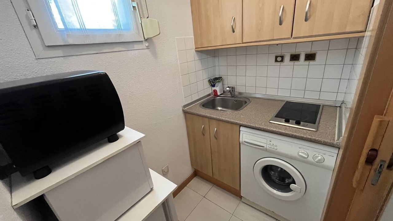 1991 apartment on the 2nd floor. Composition: a small kitchen with fridge, small electric oven, 2-burner ceramic hob, microwave, washing machine. A living room with sofa bed for 1 person. Terrace with garden furniture. a bathroom-WC. one bedroom with 2 single beds. Private parking.