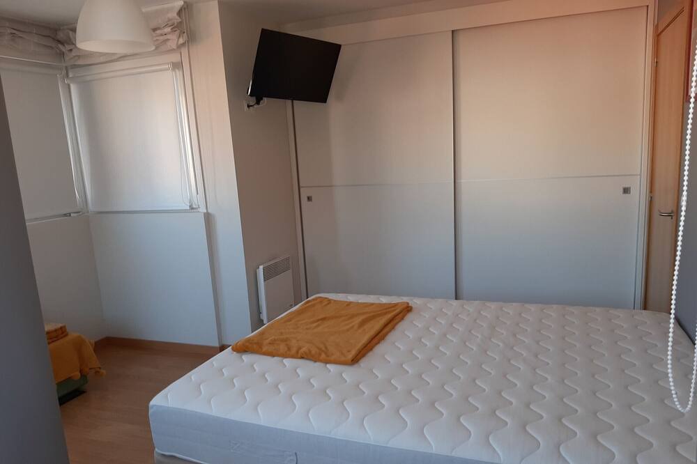 In Hendaye, in the heart of the city center, pleasant apartment located on the second floor of a recent residence with elevator close to the station. You will enjoy a living room with a 140 cm convertible sofa for two people, a dining area and an equipped kitchen (Senseo coffee maker) opening onto a balcony. The sleeping area has a spacious and bright bedroom with a 160 cm bed, large built-in cupboard with a television and a bathroom. A private parking space in the basement completes the package. private parking space / no wifi / filter coffee machine. [hidden] will come back! To be paid before your arrival: tourist tax and accommodation deposit by credit card only. Optional services to be planned before arrival: - Sheets and towels, bath mats and tea towels: €20 per person - Cleaning during or at the end of your stay 100 euros. -Mini internet box: €49/week or €10/day while stocks last. Property managed by a professional. Unless stated, services such as cleaning, bed linen, towels etc. are not included in the price of this rental. If pets are allowed (information in the advertisement), charges may be applicable. Only equipment mentioned in this advertisement are present. Equipment not mentioned are not considered to be present.