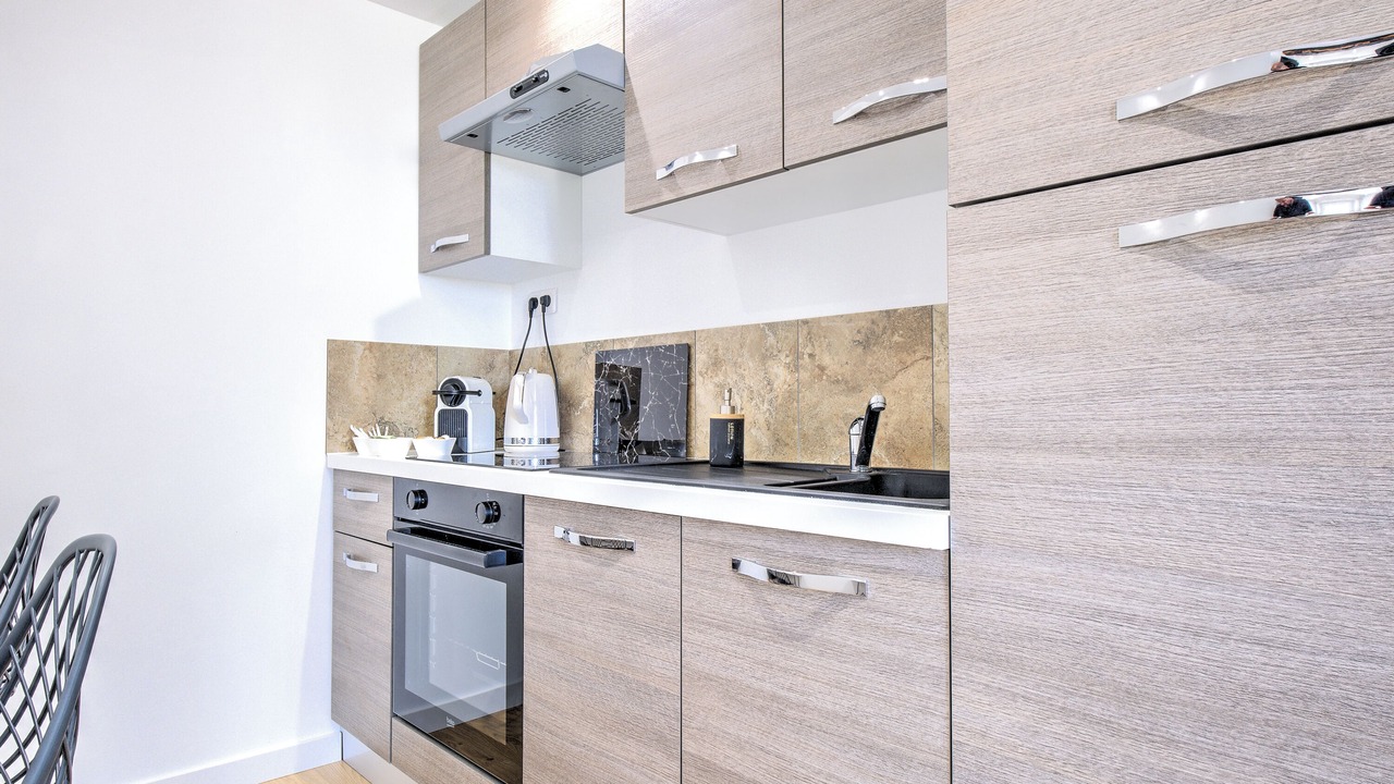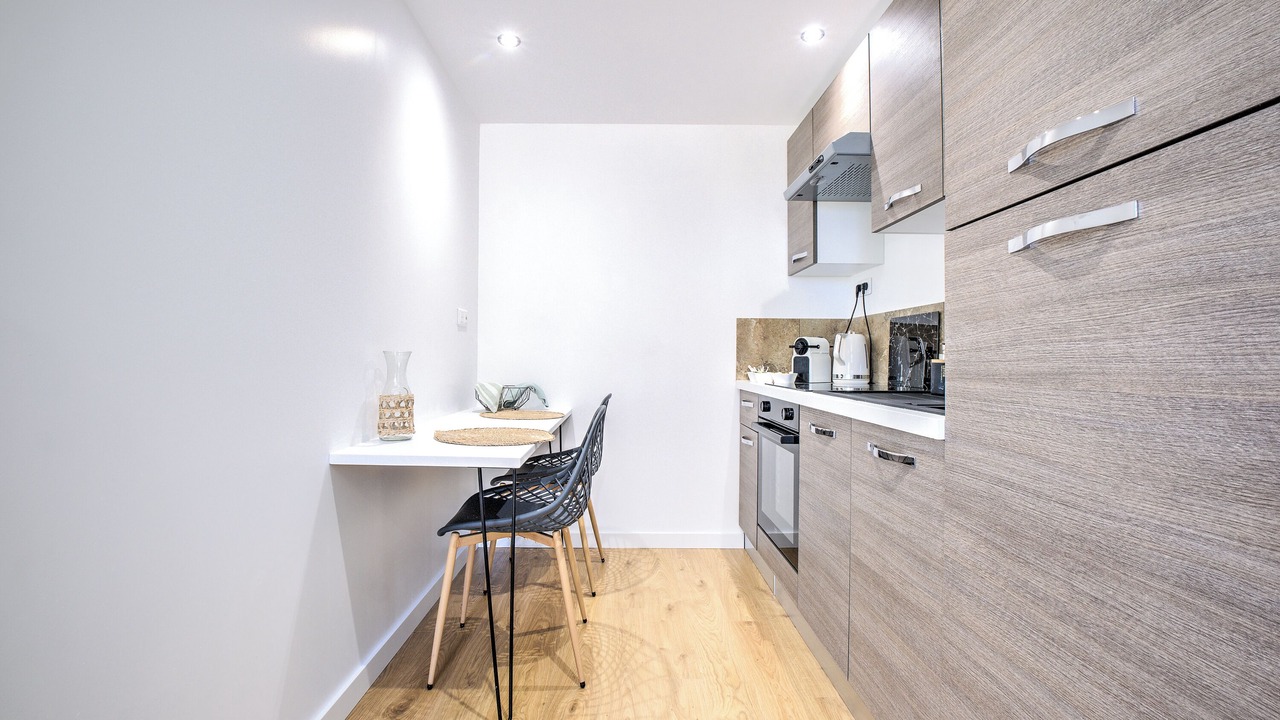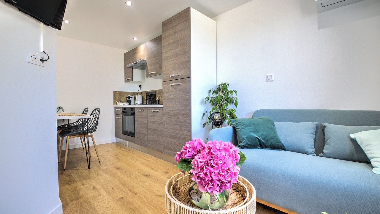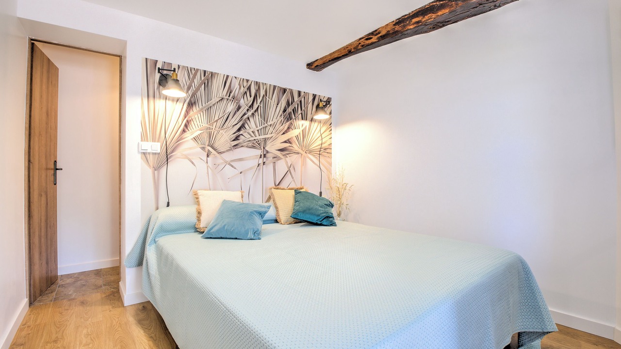 This apartment offers a bedroom with a double bed and a sofa bed for one person in the living room. It also has a private bathroom and kitchen.