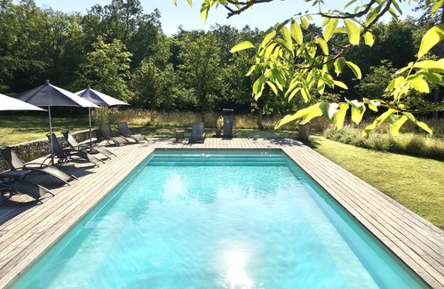 Chez Colette et Mimi is one of the three independent luxury gites located in the 300 year old outbuildings of Le Maine, an early 18th century delightful Chartreuse. Here everything breathes Peace, Harmony and Beauty. Located in the centre of the Dordogne region, Le Maine is the perfect relaxing base to get to know the Dordogne, go in search of 350,000 years of history of mankind, experience rural France, discover local gastronomy and wines, and be happy like God in France in a peaceful, bucolic atmosphere. The estate of La Chartreuse du Maine encompasses 67 acres of gardens, meadows and woods with many pathways, on the edge of the peaceful village of Cubjac. Within Le Maine you will enjoy relaxing in a lounge chair by the sunny swimming pool that overlooks the estate.