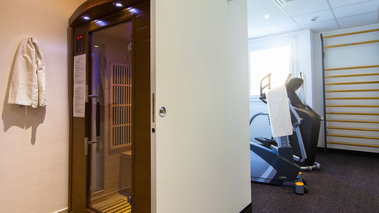 Recreational amenities at the hotel include a sauna, a fitness center, and a seasonal outdoor pool.