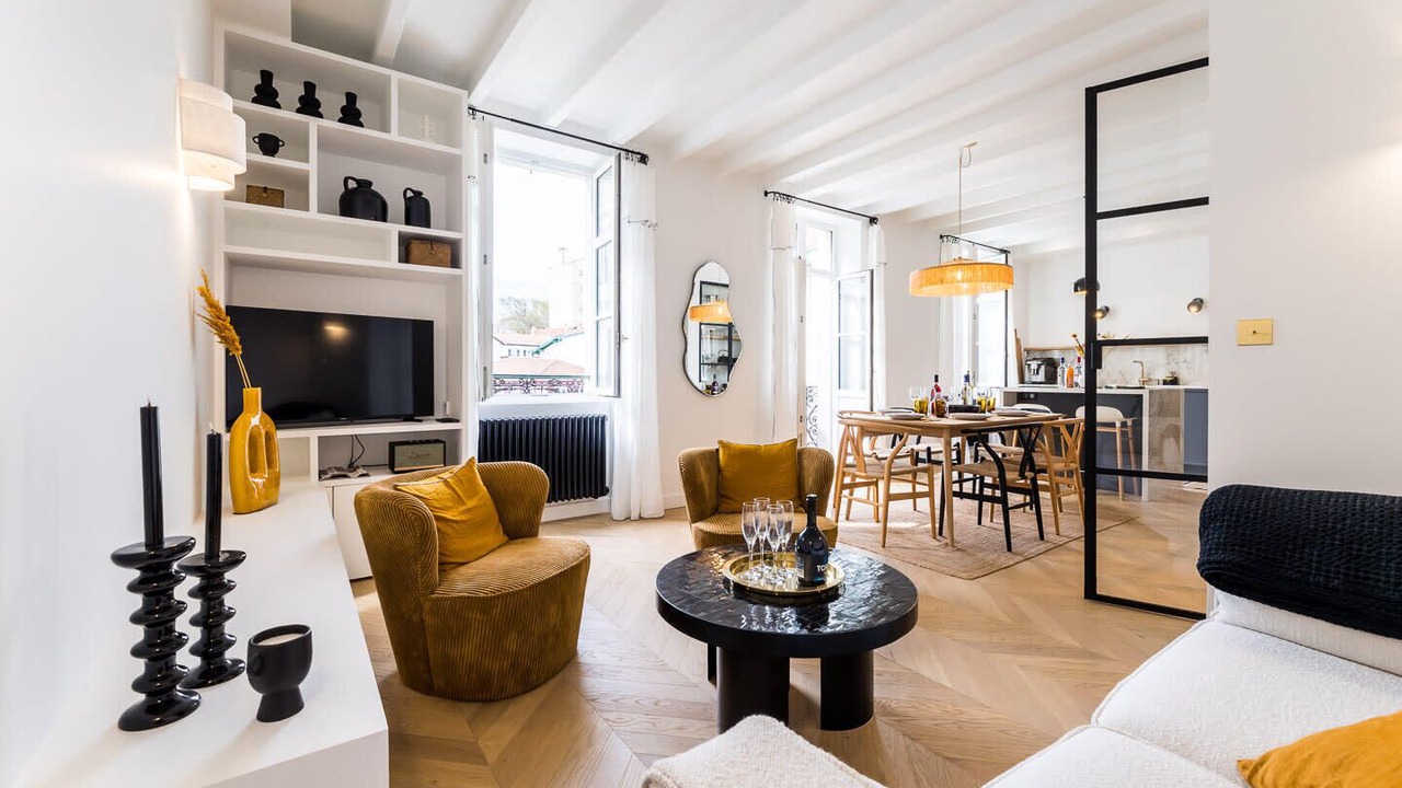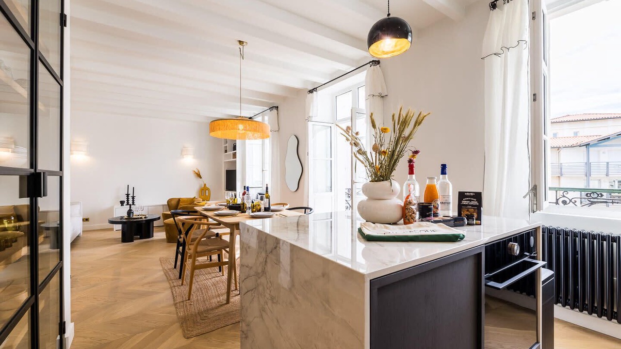 Welcome to BLOOM, a magnificent duplex in the heart of Biarritz. Just decorated by an interior designer, the apartment has been designed as a space of well-being, a real cocoon in the heart of the city.