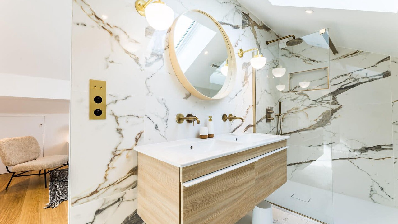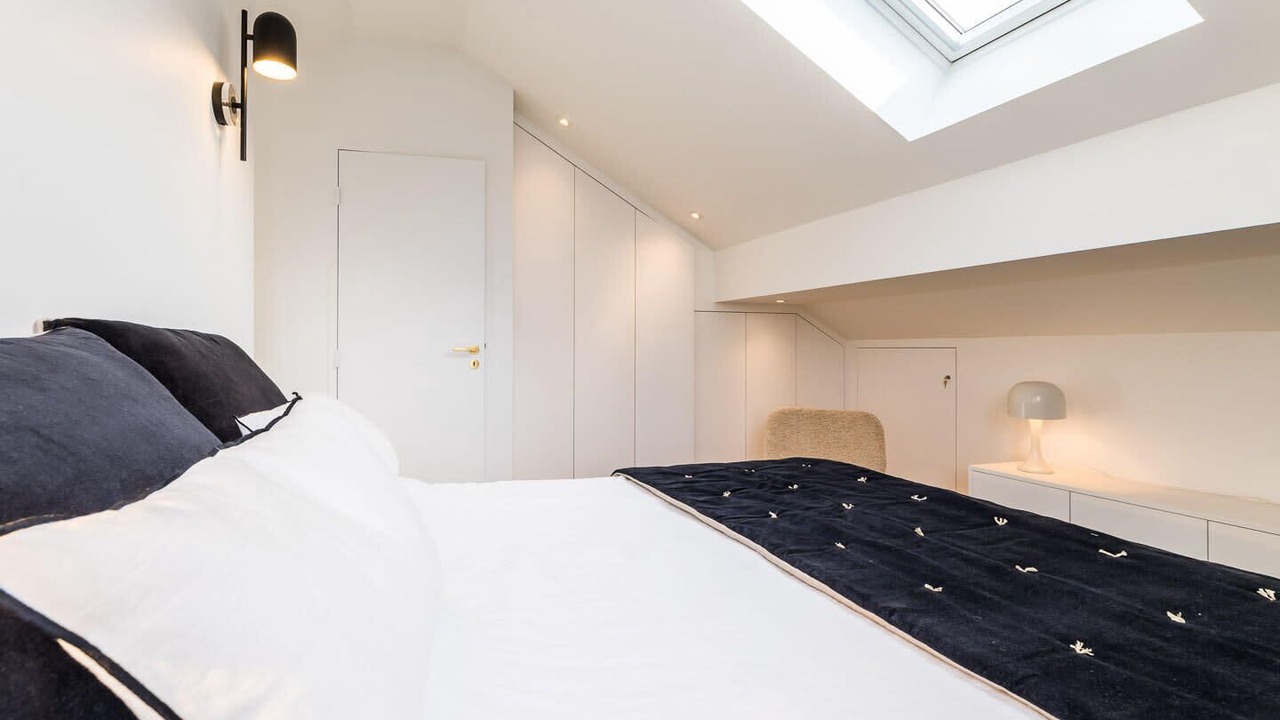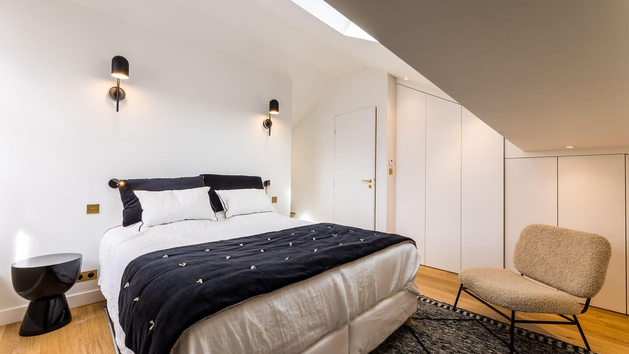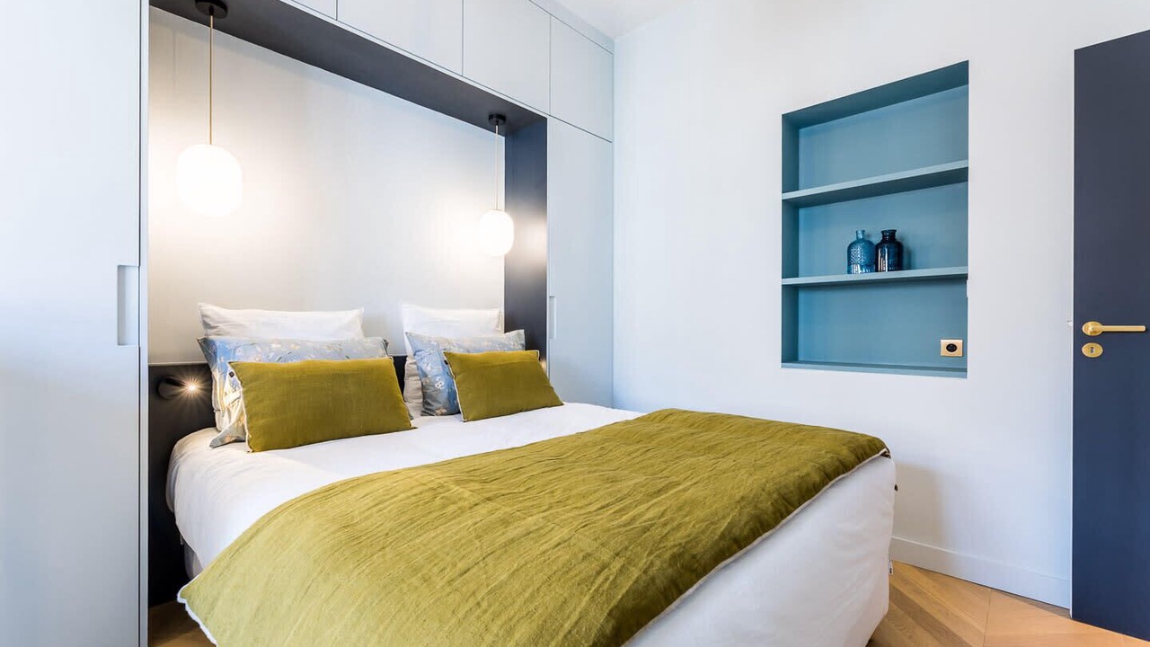 The three suites of the apartment are composed of a sleeping area and an adjoining shower room.