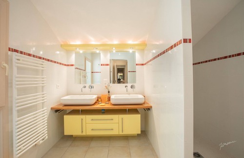 Outside, in addition to the enjoyments shared on the rest of this holiday area in Lot et Garonne (unsupervised indoor pool, private tennis, multisport field ...), a large outdoor covered terrace of 25 m2 with garden furniture and an electric barbecue (no ash, no risk) and the sunbeds are at your disposal.