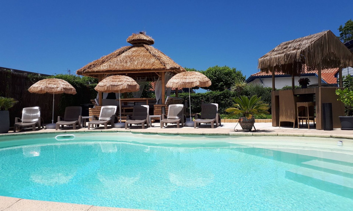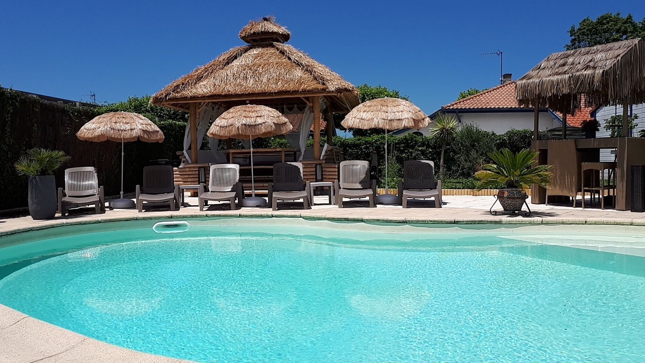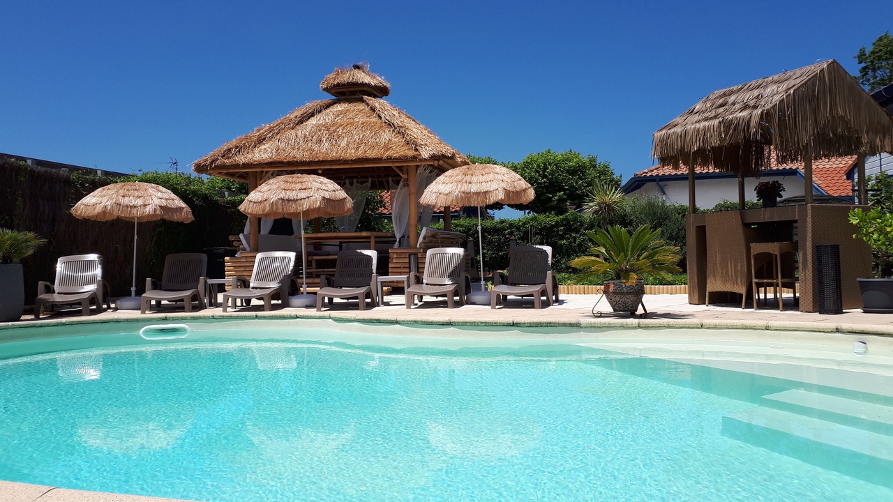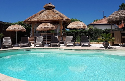 (Text automatically translated) Superb chalet with heated pool (secured by barriers) and large covered terrace of 15 m2 garden near the owners house but independent (separate entrance, not overlooked, no joint, small private garden with sunbathing). 2 bedrooms (one with 140 beds and the other with 3 beds 1 pers.). Bathroom and separate WC. Very clean, neat and well decorated, very well equipped. Fully enclosed garden, safe for children. Park with small lake and soccer field nearby. Walk to all amenities (bakery, supermarket, pharmacy, hairdresser ...). Sheets fournis.INTERNET. 5 km from the ocean and 10 km from Hossegor Lake (swimming). Close to many attractions, parks and wildlife ... 10 km from Biarritz and Hossegor-Capbreton. 2 km from Bayonne. 35 km from Spain.