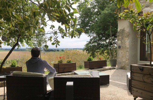 Chambre avec spa et terrasse privée. Petit déjeuner inclus. A proximité des Landes, du Gers, de la Dordogne de nombreuses activités sont possibles en Lot et Garonne ( fluviales, randonnées, équestres cyclo ...)Salle de bain et wc privé