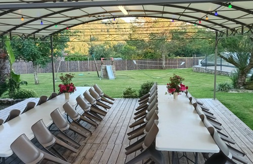 Large covered outdoor pergola, ideal for outdoor dining or evening events