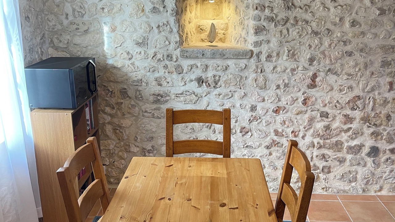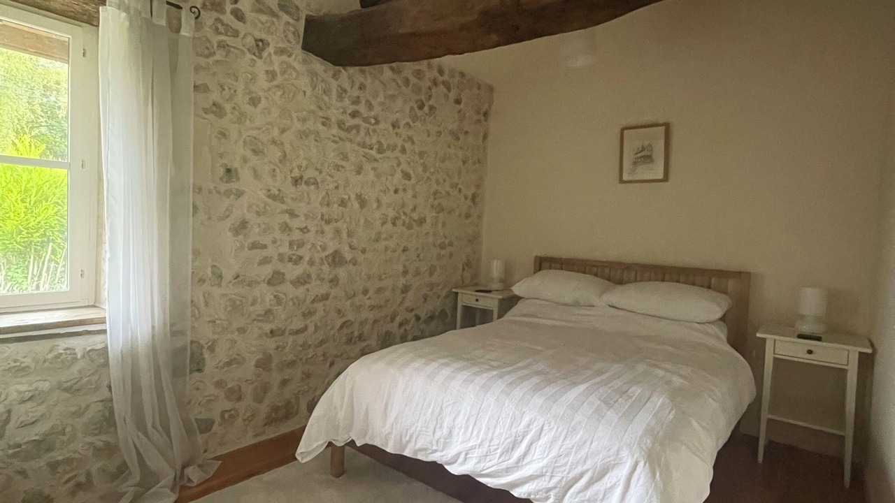 The property is surrounded by beautiful countryside, with stunning views over the valley that can be enjoyed from the spacious and private garden. The home, a traditional stone property with over 250 years of history, was once a residence for nuns who supported the local church and served as the village bakery. Recently refurbished, the house blends character with modern comforts, featuring a new bathroom with a heated mirror and a well-equipped kitchen.