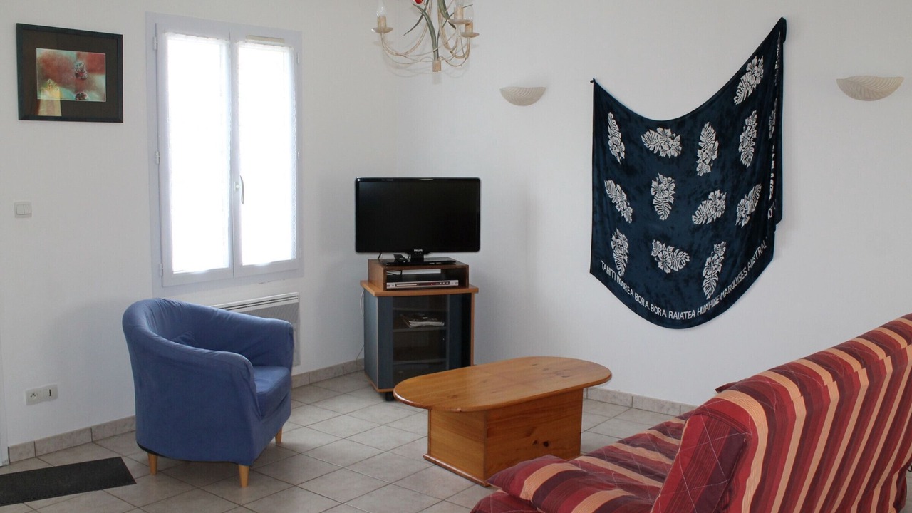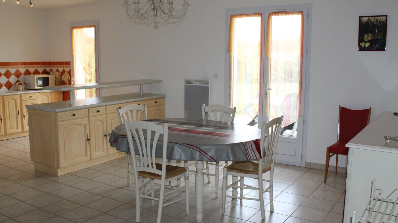 House located near the Thermes du Connétable comprising: a large living room open to a fully equipped kitchen, two bedrooms, one with a 140*190 bed and the other with two 90*190 beds, and a bathroom.