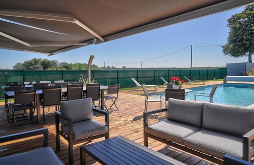 Relax by the outdoor pool or sip a drink in the garden of this vacation home, which also features a deck or patio and outdoor furniture. As for the great indoors, you can try your hand at foosball and table tennis, or enjoy the free WiFi and TV.