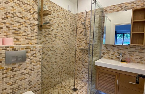 The kitchen is equipped with: electric stovetop, small refrigerator, extractor hood, kettle, Nespresso coffee machine and the necessary equipment to prepare and serve meals. A "kitchen basics" is also provided (pasta, rice, salt, pepper, oil...), which you are asked to "restock" at the end of your stay.