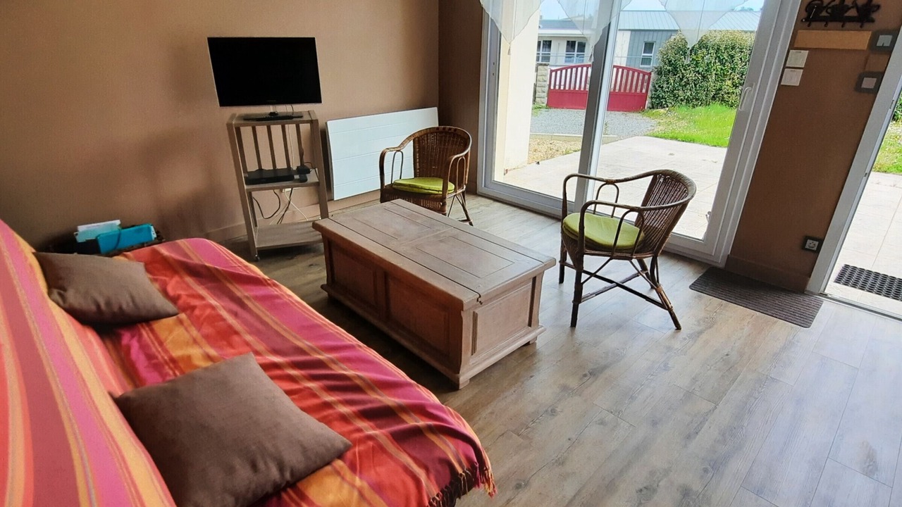 House of 79m² habitable. Very well equipped, the latter has a 2-seater sofa bed 120*190, a television with a DVD player and a fitted kitchen area (4 gas rings, electric oven, a dishwasher, a fridge-freezer, a microwave). The house offers a kitchen open to the living room, 3 bedrooms, (bed 140*190, 1 bed 90*190, 2 sofa beds 120*190), shower room, WC, 2 terraces. Wifi. Sleeps 9 people. Pets not allowed. Your EDF consumption according to the electricity meter reading is an additional charge (0.14 cts per kwh). Holiday vouchers accepted. No sheets, towels or tea towels in the accommodation. Optional services: End of stay cleaning (€25/hour), Rental of sheets for blankets (90 cm bed: €11, 140 cm bed: €13, 160 cm bed: €15), Rental of sheets for duvets (90 cm bed: €15, 140 cm bed: €19, 160 cm bed: €21), Rental of towels €11. Rental of tea towels: €10. Adjoining enclosed land of 1,250 m².