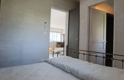 This charming cottage offers all the necessary comforts for a peaceful stay. You will find a bedroom with a comfortable double bed (140 cm) for sweet and restful nights. The living area is welcoming and includes a fully equipped kitchen and a dining table. A sofa bed and a television are also available for your relaxation.