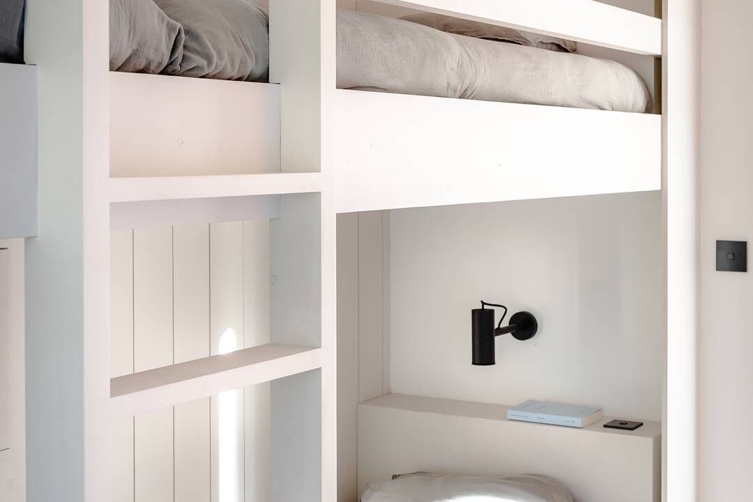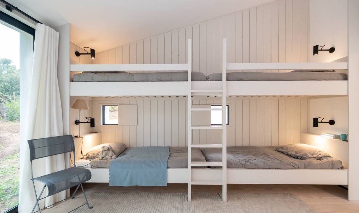* Bedroom 3: Child dormitory with 4 single beds (2 bunk beds) with adjoining bathroom (shower and bath), separate WC