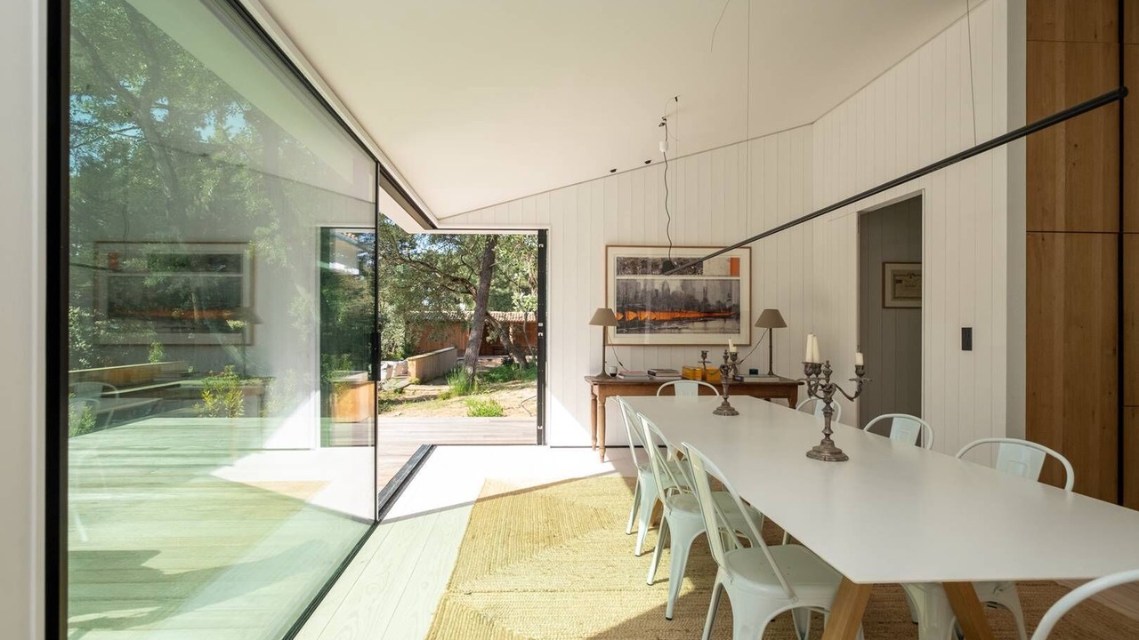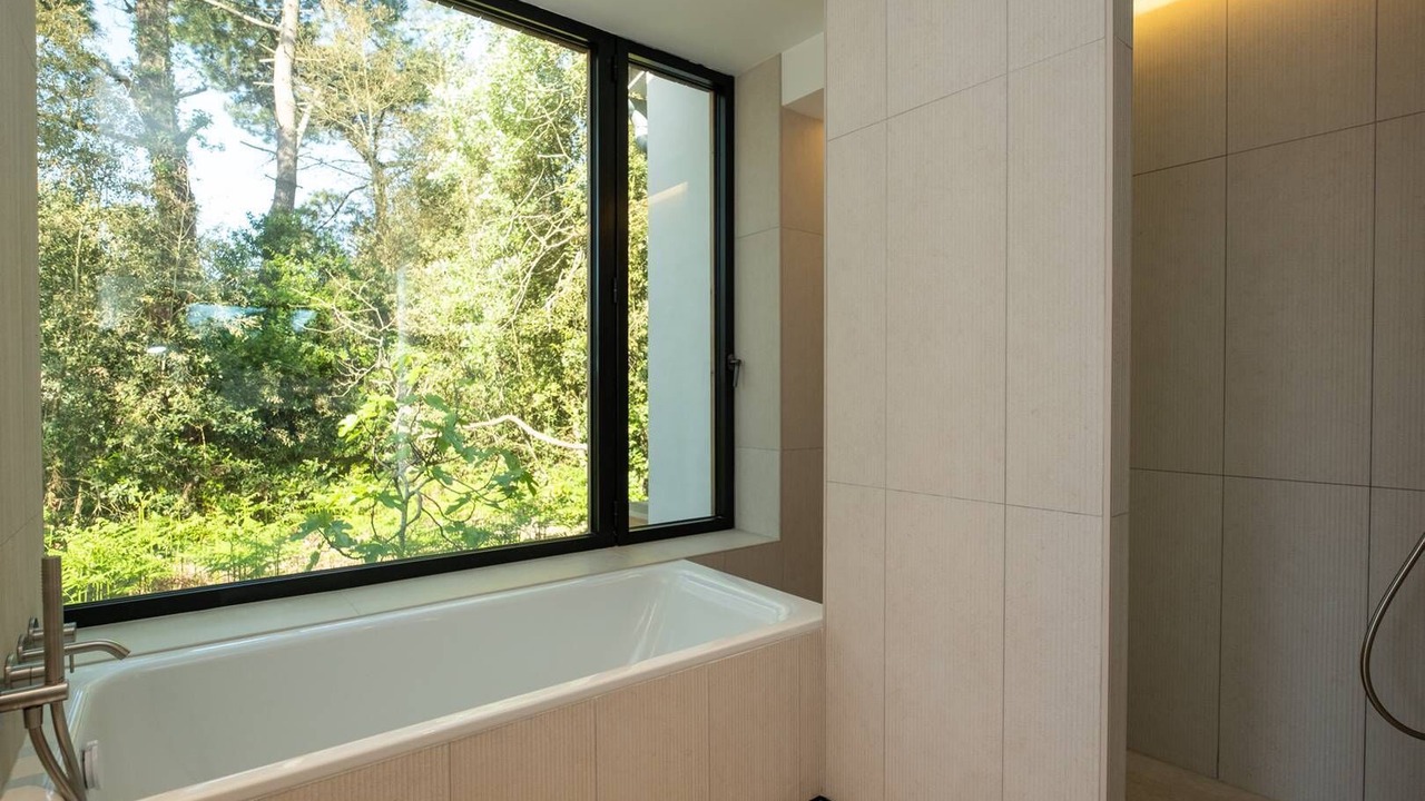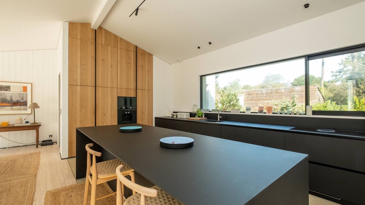 The house has 5 double bedrooms and 1 children's bedroom which can accommodate a total of 10 adults and 4 children, each bedroom having its own bathroom. The house is articulated in two communicating houses allowing an ideal cohabitation for several families. Bathed in light all day, its huge bay windows plunge you into a feeling of serenity inviting meditation.