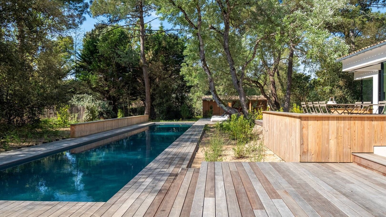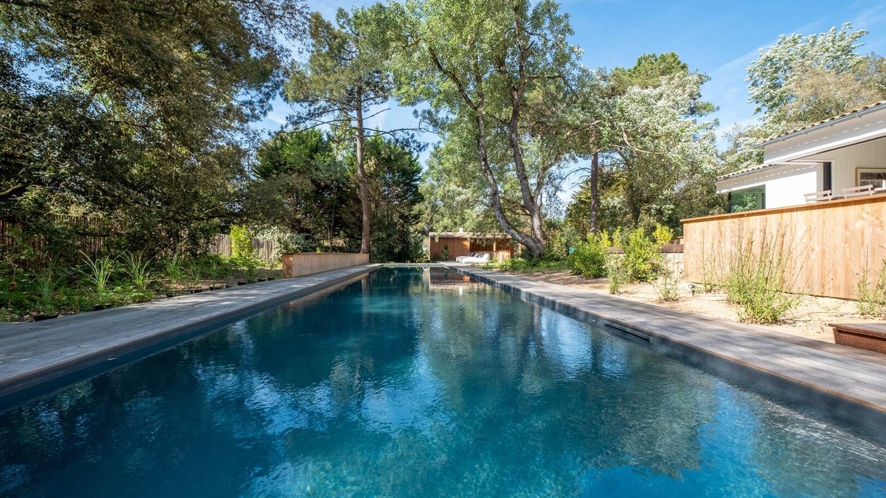 In a green setting close to the shops and the beach, this new family house of 450m2 on a plot of 4,600m2 is an architectural treasure. Designed by its owners and the architect Christophe Ducharme, it is a house with exceptional materials chosen within the framework of a refined and uncluttered decoration always for the greatest comfort of its guests. Organized around a 25-meter swimming pool, it will enchant its guests.