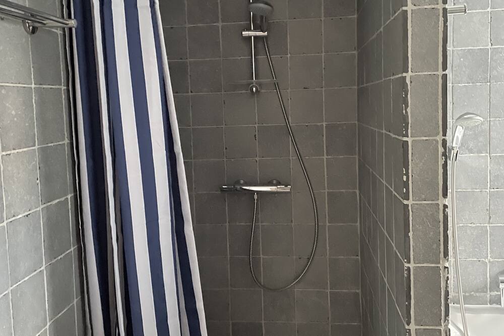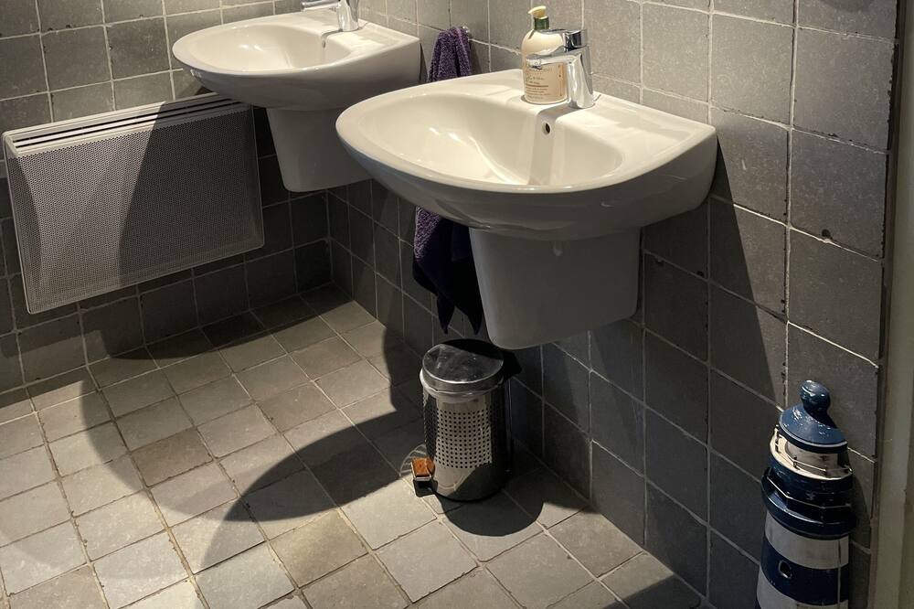 The bathroom is equipped with two sinks, a bath with shower over and a separate shower. There is a separate toilet.