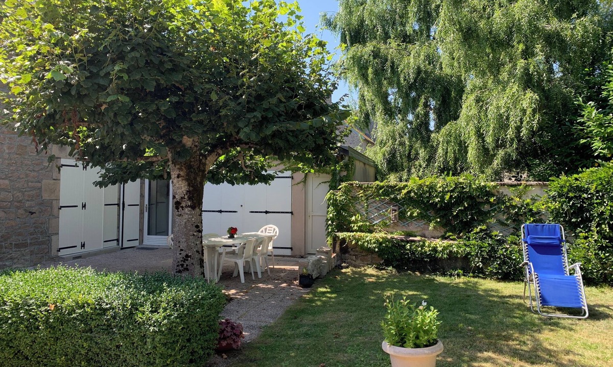 • In the storage shed, at your disposal, are a patio table and chairs, four lounge chairs, a sun umbrella, and a portable charcoal BBQ.