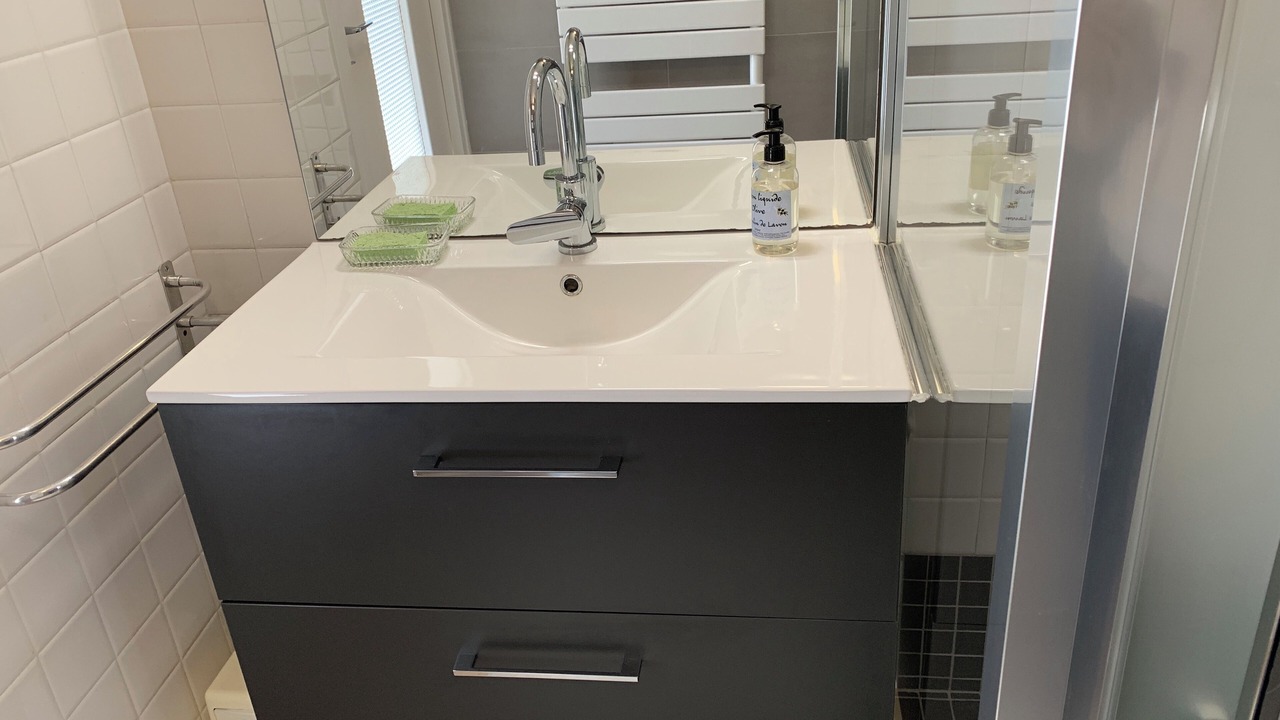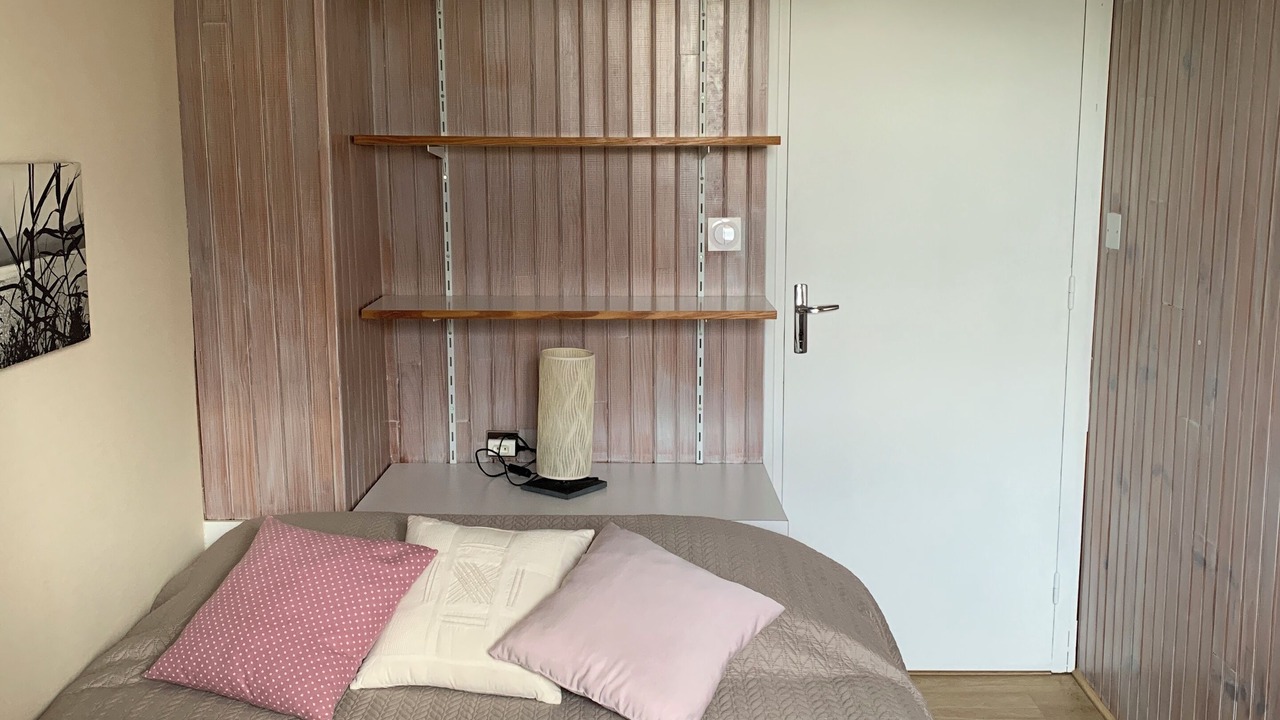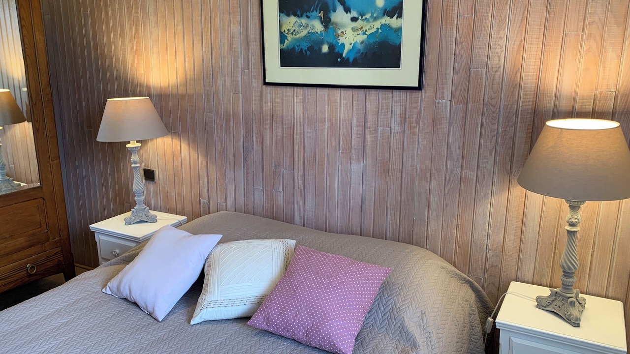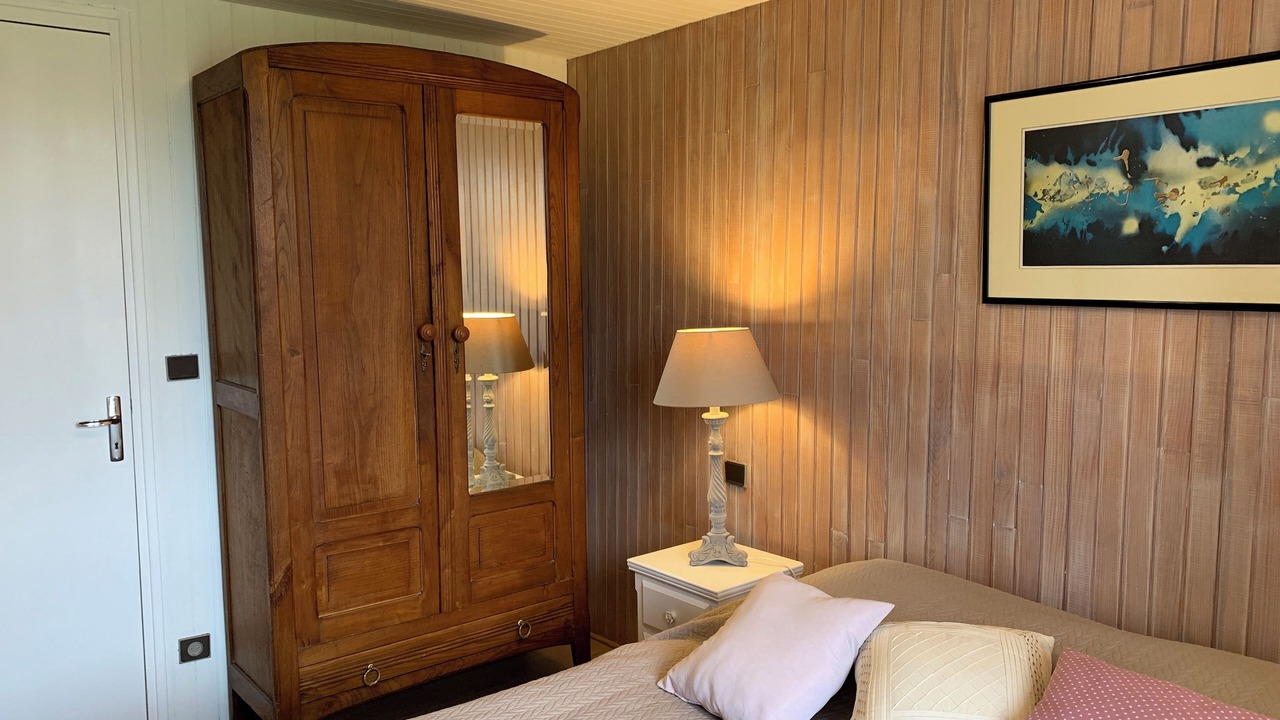 • 2 separate bedrooms with, in each, a double bed (140x190 cm), bedside tables and lamps, a wooden armoire. Quality beds with a slat frame, a mattress, and a 6-cm memory foam mattress topper for improved sleep comfort