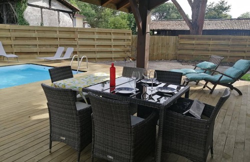 The privileged location of Linxe, 15 minutes from the Atlantic Ocean and 10 minutes from Lake Léon on the Vielle side, makes it a destination of choice all year round! Located in the village, the Clos Duche has been designed to provide you with the comfort necessary for a good stay and to offer you the convenience of a private swimming pool on site (4x6 m, flat bottom depth 1.30m, secured by an alarm). Open from June to September depending on weather. You will benefit from a well-kept garden, a pleasant wooden terrace overlooking the swimming pool with garden furniture, gas barbecue, access to the cottage is via an electric gate, with the possibility of bringing in vehicles. This vacation rental located mainly on the ground floor offers: a living room with open kitchen (fridge-freezer combination, dishwasher, induction hob, electric oven, microwave), living room and lounge (television, wifi), 2 bedrooms (1 bed in 140, and 3 beds in 90), beds made on arrival bathroom with shower with tray, hanging toilet in bathroom. The washing machine-dryer combination is installed in the bathroom. For your comfort, sheets are included. The cottage has a mezzanine with 1 140 cm floor bed (for teenagers), and a relaxation area, but under a ramp. Baby equipment can be made available to you (bed, high chair and bathtub). Gîte opposite the school in the village. Around Linxe, the forest is omnipresent, preserved and abundant. If you are a fan of walking, take the Binaou hiking trail for beautiful walks in the forest. By bike or mountain bike (rental nearby), explore the Lo Camin de Hé cycle path in harmony with the nature that surrounds you. Don't forget local products! bring back a little of the Landes and the South-West in your suitcases and extend your vacation!