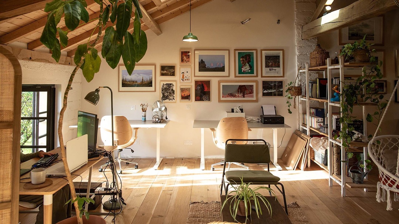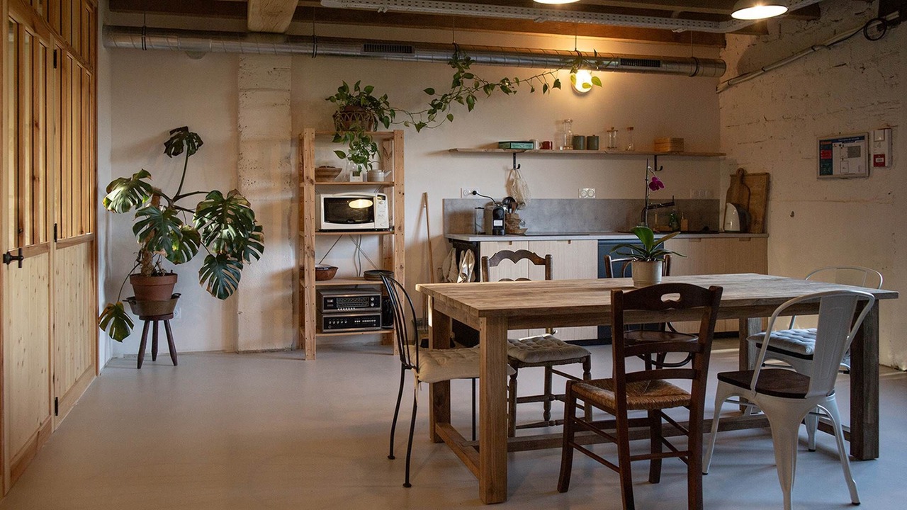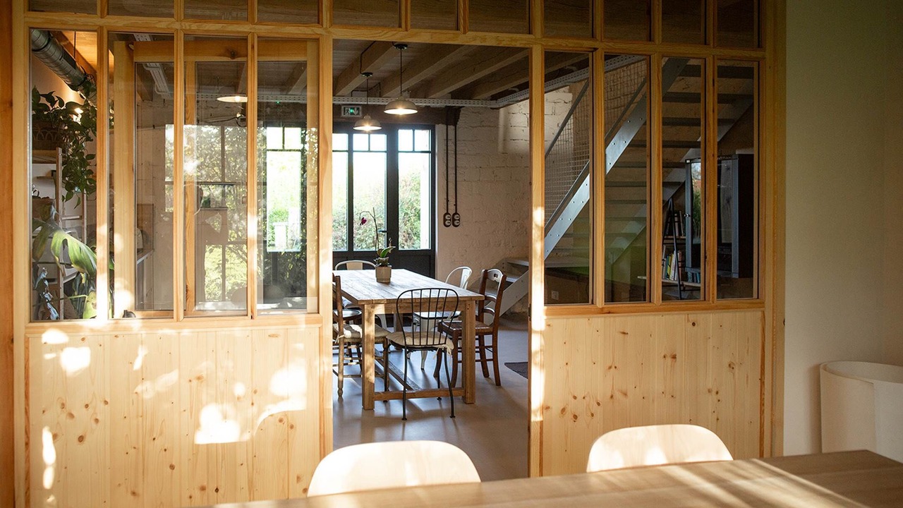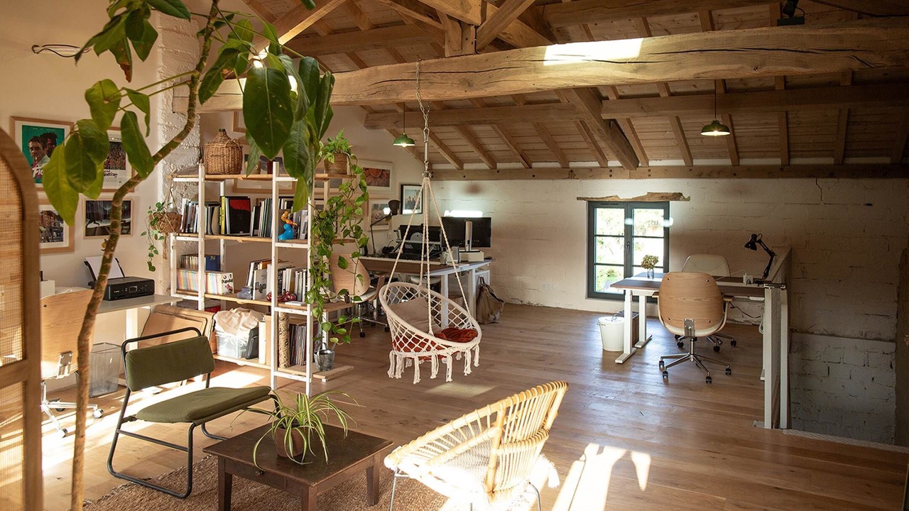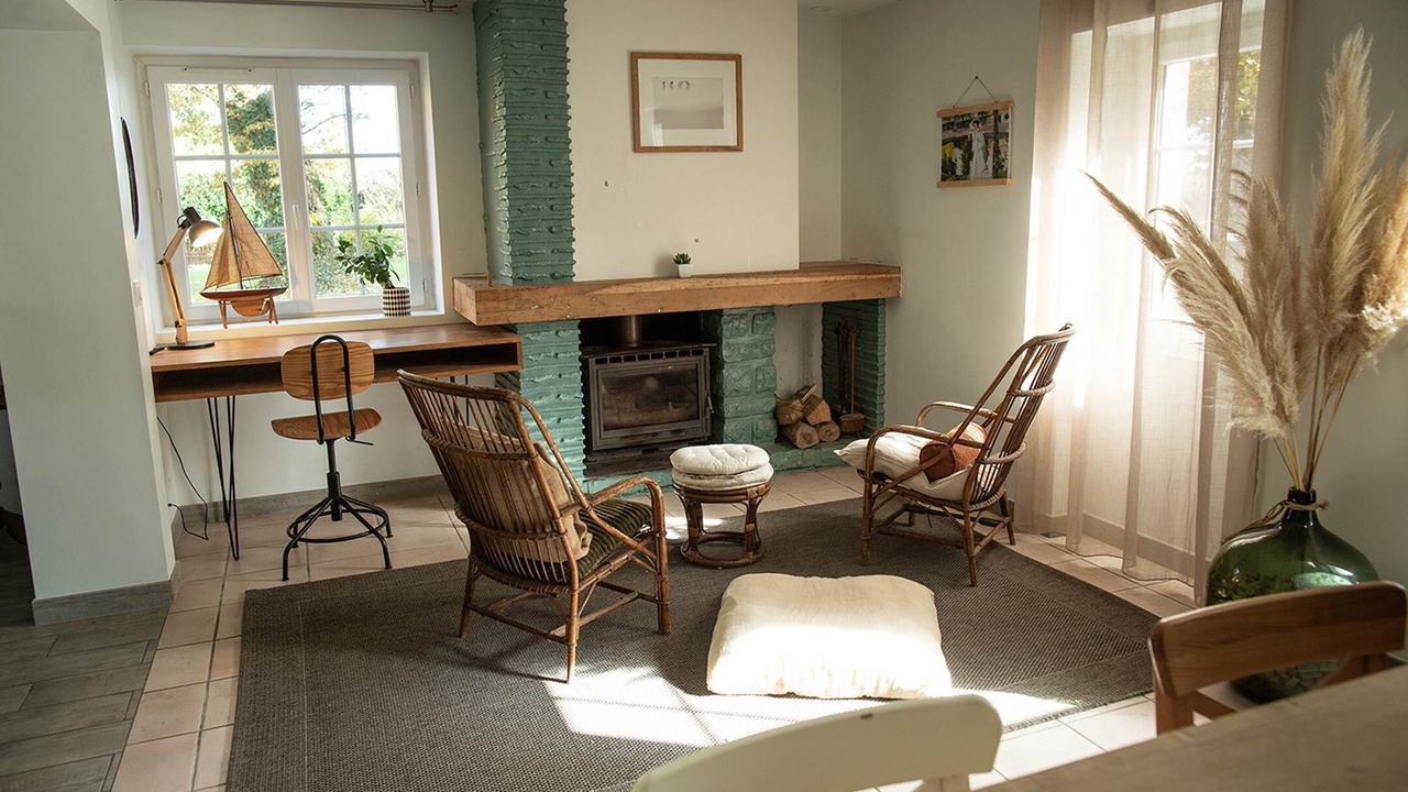 This 100 square meter old barn has been completely renovated since 2021 and converted into a beautiful workspace and can accommodate up to 10 artists. The ground floor has a private and soundproof meeting room, toilets that meet disabled access standards, a dining room and a fully equipped kitchen. Coffee and tea are provided and we sell local products on site such as apple juice that we produce on the farm. The barn is equipped with fiber and outdoor wifi if you want to work outside and enjoy the sunny days. The space mixes old and modern materials and has been designed to make you feel at home. The construction of the studio also uses natural and ecological materials such as clay, lime and wood. The building has been designed to minimize energy losses, so that even in winter you can enjoy underfloor heating and work in pleasant conditions. The best thing is to open the windows during spring or summer and enjoy the birds singing, the squirrels passing by or the sound of the rain while you work! End your working day with a break in the chicken coop or pick strawberries in the garden during the summer.