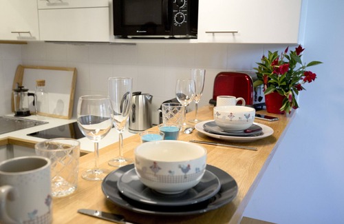 In the heart of the historic center of Bordeaux, charming 2-room apartment fully equipped on the 1st floor of a beautiful stone building.Large bedroom with double bed, wardrobe and desk. Equipped kitchen open to the living room.The convertible sofa in the living room can accommodate 2 additional people.Ideal location for exploring the city thanks to the proximity of transport (tram), quays, shops, restaurants, markets and flea markets.A linen extra fees of 15 € will be applied if the reservation is for 2 people using the sofa bed. The request for additional sheets must be made at least 24 hours before arrival.