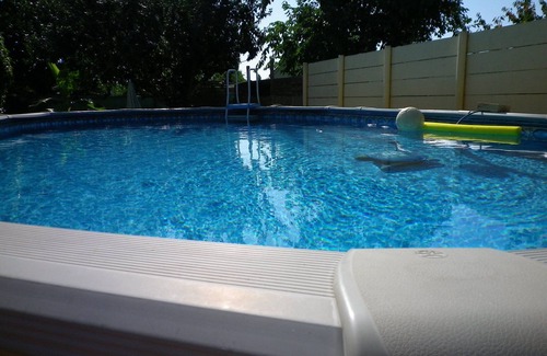 Private above-ground pool (dimensions: 7.40 x 3.80 m) with safety ladder.