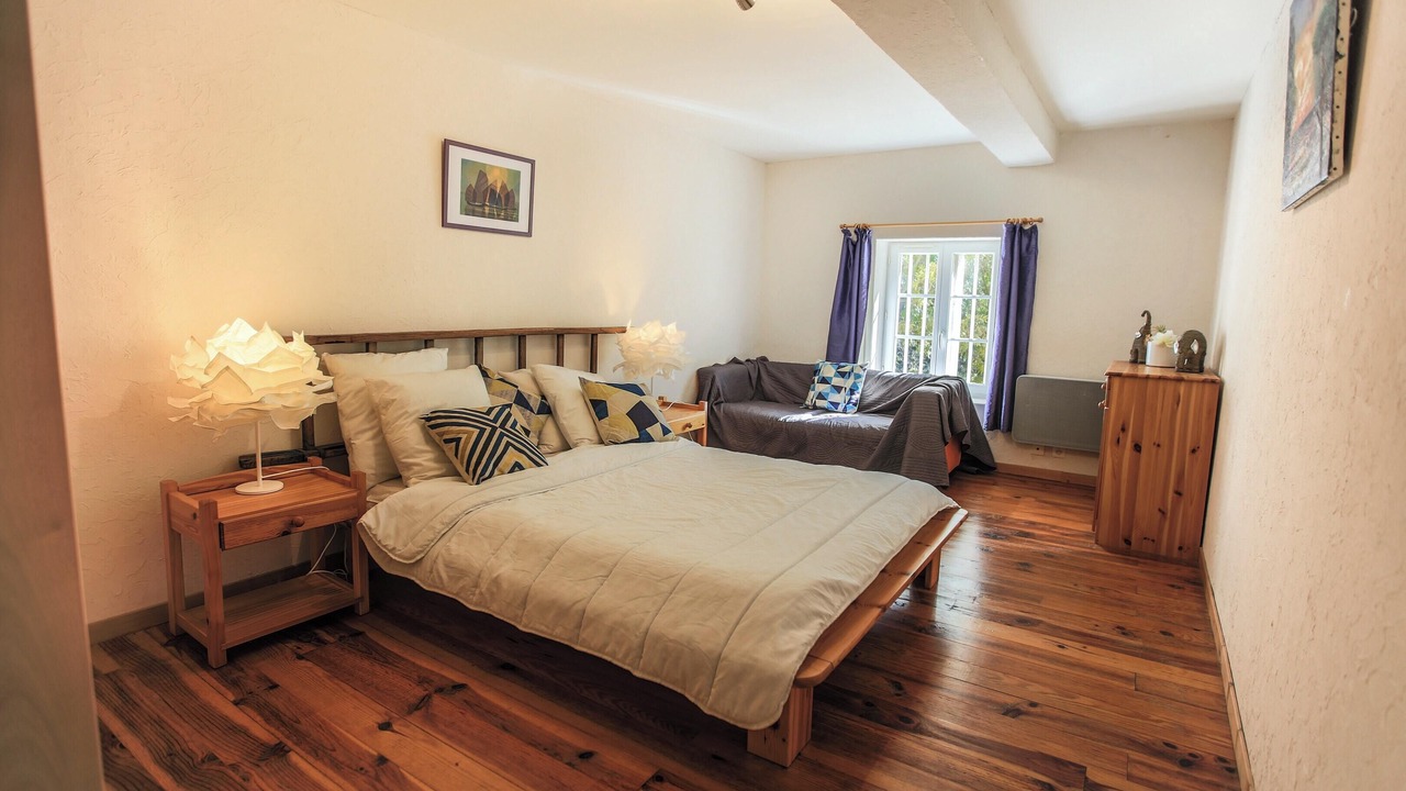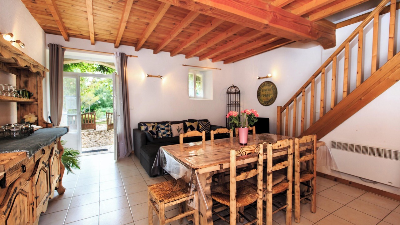 The unfenced garden offers a perfect setting for outdoor relaxation, featuring garden furniture, sun loungers, and a barbecue for al fresco meals. Enjoy also the petanque court, ping-pong table, and swing set for recreational moments with family or friends. The shared swimming pool is available in a peaceful environment, creating the ideal spot to cool off under the sun.