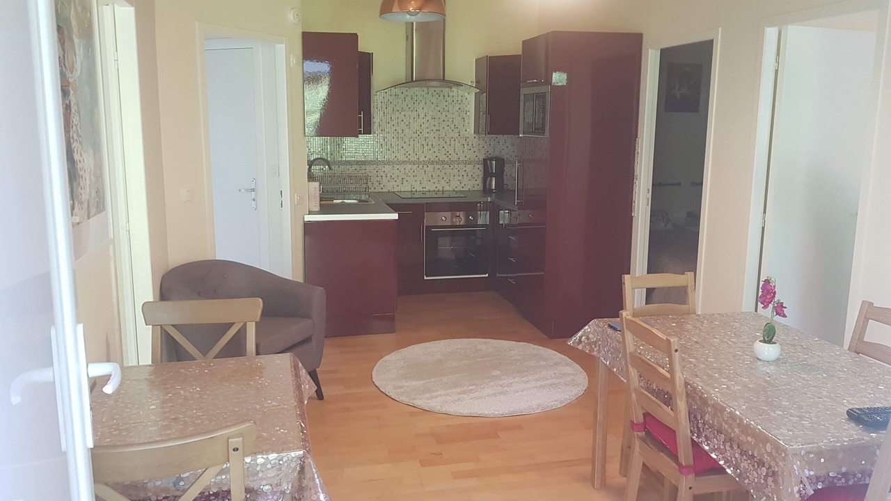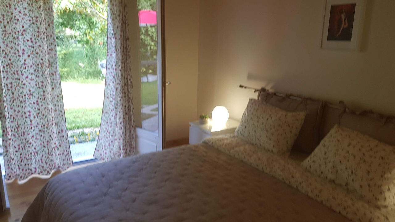 New semi detached house in a calm and family environment. Comprising a bedroom with double bed 160, closet and dressing table, and two bedrooms each with two beds and a wardrobe. A dining room for six or more places and a television / radio. A new fully equipped kitchen; induction hob, oven, microwave, integrated fridge-freezer, and washing machine. A bathroom, a large shower and double sinks. An independent W.C. a large garden with table, parasol, and a modern barbecue.
