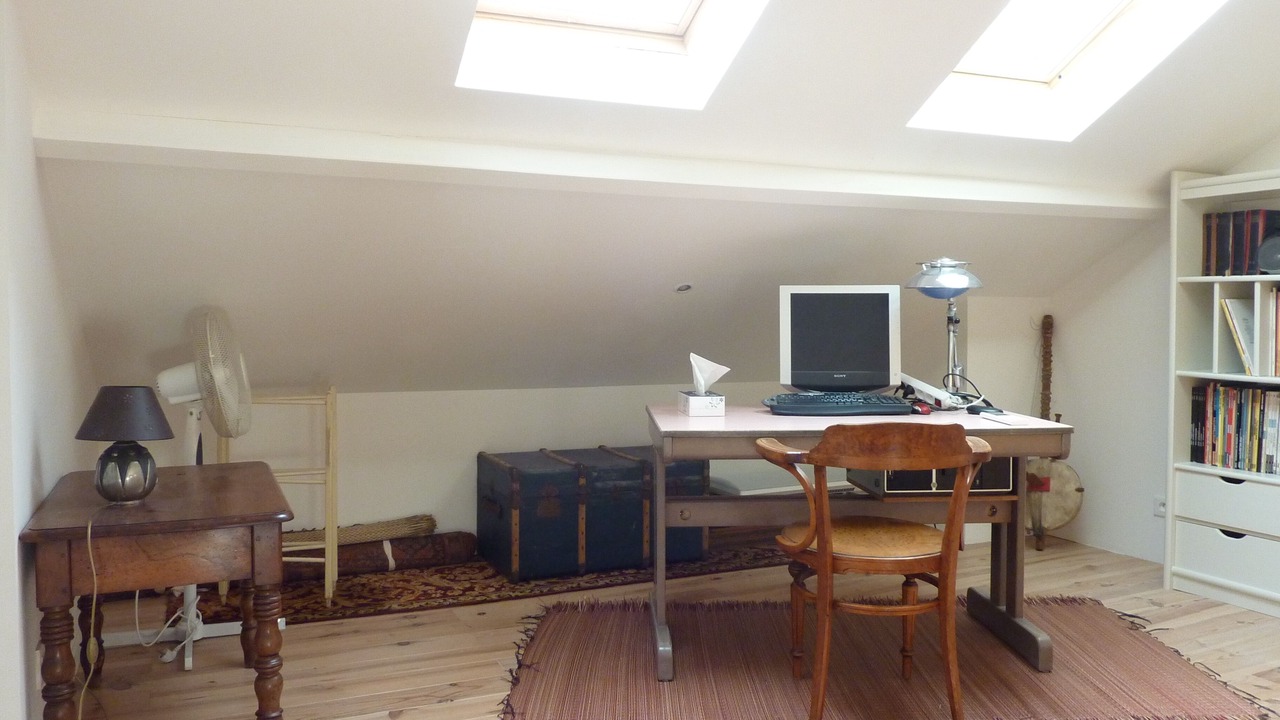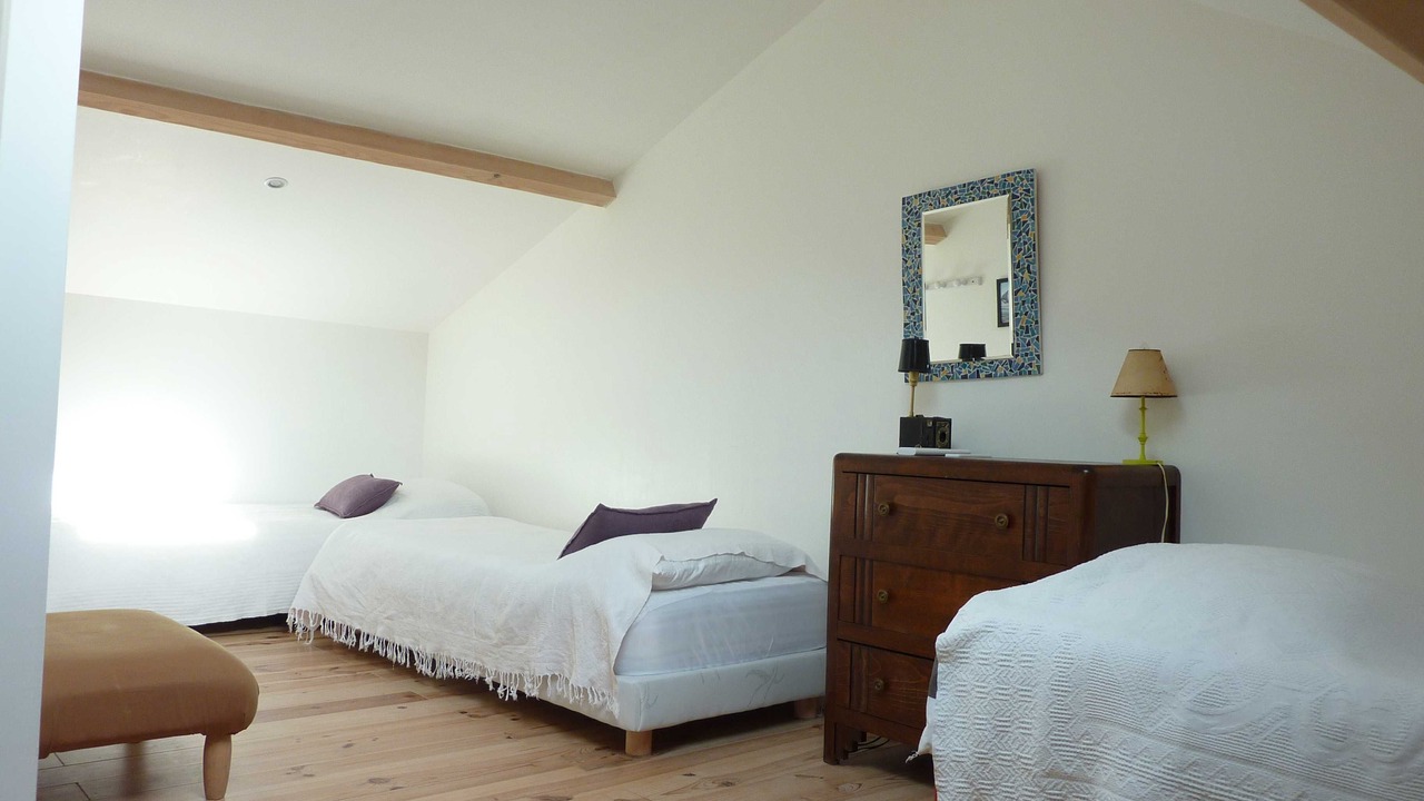 Three rooms . Two with double bed, one upstairs with three single beds. Upstairs office with additional sleeping. The upper floor is fully air conditioned.