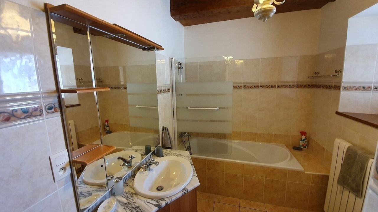 Capacity: 13 people. Private pool 12 x 6 m (secure, alarm + barrier). Living space: 200 m2, large covered terrace. Vast wooded, area: 10000 m2 Barbecue, 8 rooms, 6 bedrooms (5 single beds, 4 double beds, 2 cots) 2 bathrooms, 2 shower rooms, 4 toilets, kitchen, dining room, living room, mezzanine household .Équipement: Fridge freezer, oven, hob, microwave, dishwasher, washing machine, vacuum cleaner, iron .Équipement media: Internet connection, TV, DVD player loungers, table tennis table , Swing. Sheets and towels provided.