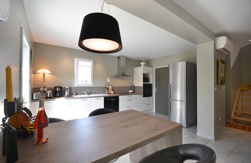 Terraced holiday home. Liveable surface area of the residence: 100 m2. There is a garden. Garden area 400 m2. There is a large terrace. Terrace area 60 m2. The garden is fully private for this residence. It's a modern/new house 2012. Cosy, tastefully designed with an eye for detail. The interior of the house is neat and comfortable. The residence is 5 km from the village Bédoin, It is a lively village. Nice view of the pastures. The house is situated ideally for visiting the area. Here there are picturesque villages such as Crillon-le-Brave, Venasque, Gordes, Roussillon. The magnificent cities of Avignon and Orange are more than worth visiting. In terms of nature trips to Mont-Ventoux and Gorges de la Nesque are definitely recommended. There is a bakery/bread depot at 5 km. Shops can be found in Bédoin, Mazan, Carpentras. Restaurants can be found in Bédoin, Mazan (5 km) and Crillon-le-Brave (3 km). It is a nice point of departure for walks. In this region you can go cycling to your hearts content.