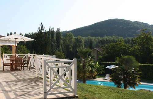(Text automatically translated) near Sarlat House at the entrance of the village of Daglan, on a plot of 3300 m2. The residence is composed of: an entrance, two bedrooms: one with double bed (160/190), the second with two single beds 80/190 or 160/190 (the bed linen is provided), WC, bathroom with shower, kitchen, living room, living room (TV, DVD, Hi-fi) lounge summer (covered terrace). From the panoramic terrace you can see the village and admire the beautiful swimming pool (12m x 6m) with garden furniture (chairs, umbrellas). The pool can be heated (extra-cost option) Secure parking will accommodate two cars. Pets are not allowed. New in 2013: in May, the house will be equipped with wireless Internet access, do not hesitate to take your tablet or PC. Reservation 09 50 78 48 29 or 06 77 41 85 77