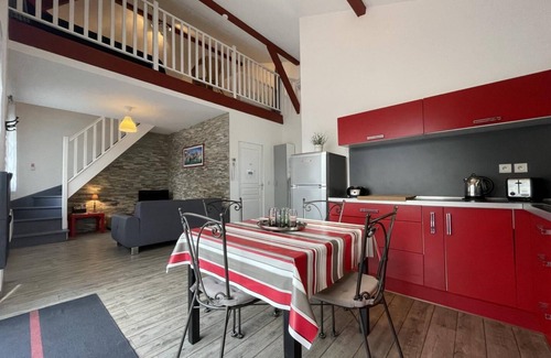 Gîte on the ground floor of the owner's house, in a district 700m from the center of Hasparren. Kitchen (vitroceramic hob), living room, lounge area, shower room with wc. 1 mezzanine bedroom with (1 double bed). Reversible heating including air conditioning. Rental of sheets and towels. Wifi internet access. Baby equipment available on request. Private terrace, garden furniture, barbecue. Deckchairs. Car park. Gîte located in a quiet place with a view of the village, 10 minutes from the thermal baths of Cambo-les-Bains (tariffs for spa guests possible).