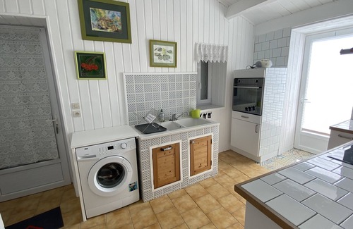 La maison est composée d'une cuisine équipée (+ lave-linge), donnant sur la cour fermée (50 m2) sans vis-à-vis avec une entrée indépendante permettant l'accès aux vélos. Un séjour/salon (TV) avec canapé-lit confortable - matelas épais. 12 cm(140 cm x 200 cm),une salle d'eau (douche à l'italienne), wc séparé, une chambre avec lit 160 cm très confortable, donnant également sur la cour ensoleillée et aménagée (chaises longues, table et chaises), linge de table inclus , location draps et housses de couette si nécessaire (15€/lit/semaine) serviettes de toilette 5 €/pers./semaine). Forfait chauffage hors saison : 50 €/semaine. Marché 5 mn à pieds (4 fois/semaine, quotidien en saison), cinéma 3 salles, commerces. Super U et hypermarché Leclerc : 10 mn à pieds (prêt d'une poussette caddie !) - Pistes cyclables à 500 m desservant toute l'île . Navettes gratuites pour les plages (Office de Tourisme sur la Grand Place) etc .... Nous sommes à votre disposition pour vous donner tous les bons plans (notre logement étant à proximité)