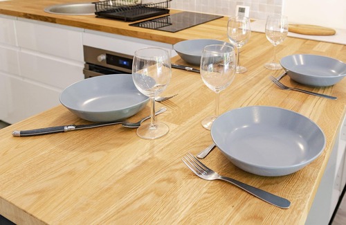 For your convenience, there's a dishwasher and spices. Bathroom amenities include a hair dryer and towels. And you can even travel light because you'll have access to laundry facilities.