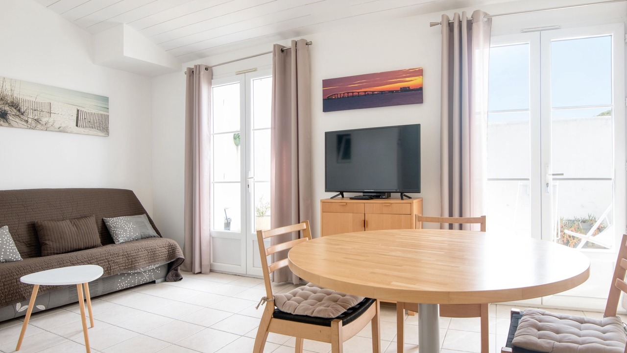 Located in a quiet street in the village of La Couarde sur Mer, this small house with terrace is 100 m from the center and 350 m from the beach. Porcelain accommodation includes: A living room with lounge, dining, kitchen (dishwasher, oven, microwave, hob, extractor, fridge / freezer, coffee maker, vacuum cleaner, etc ...). A bedroom with 140cm bed and cupboard A second cabin-type bedroom with a 90cm bed (blankets and pillows are provided) A bathroom A separate toilet A terrace with garden furniture. Internet access is unlimited.