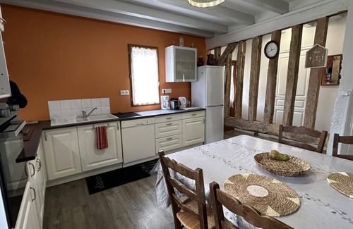 We welcome you to the heart of the regional natural park for a peaceful stay in the privileged setting of the Landes forest. Here, you'll appreciate the serenity of the setting, ideal for rest and relaxation, the vast private wooded grounds with century-old oak trees, and the bountiful natural surroundings. 7 km away, the Marquèze Ecomuseum allows you to discover the art of living and local history. The Arjuzanx leisure center, 20 km away, offers a supervised swimming area in the summer in the heart of an exceptional natural setting. Not to mention that the Landes beaches are also easily accessible. The Gîte RIBAN is an authentic traditional half-timbered house, where wood blends with modern amenities, offering a high level of comfort suitable for your family vacation or business trip. Set in a 2000m² park, you have access to an outdoor table with chairs, a parasol, sun loungers, and a plancha grill. For your entertainment, a ping-pong table, a net, and badminton rackets are also available. This single-story cottage comprises: - a living room with a lounge (TV, Wi-Fi, wood-burning stove), a dining room, and an open-plan kitchen (gas stove, extractor hood, electric oven, dishwasher, refrigerator with freezer, microwave) - 3 bedrooms: 1 queen-size bed, 1 double bed, 2 single beds - a bathroom accessible to people with reduced mobility with a walk-in shower and toilet - a pantry with a washing machine For your comfort, bed linens, towels, and household linens are included. Beds are made upon arrival. Baby equipment is available: a travel cot, high chair, stroller, and children's tableware.