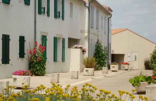 In Saint Martin de Ré, near the port and the beach of La Cible, in a quiet residence made up of small houses with flowery paths of hollyhocks, "le Clos Vauban"