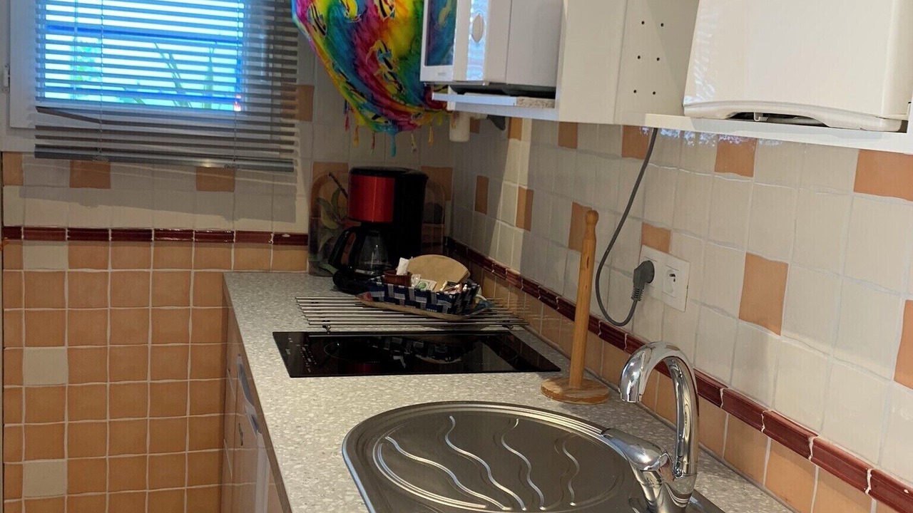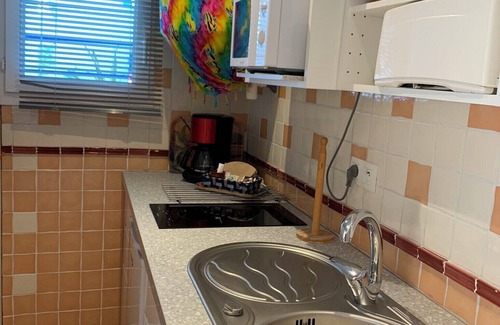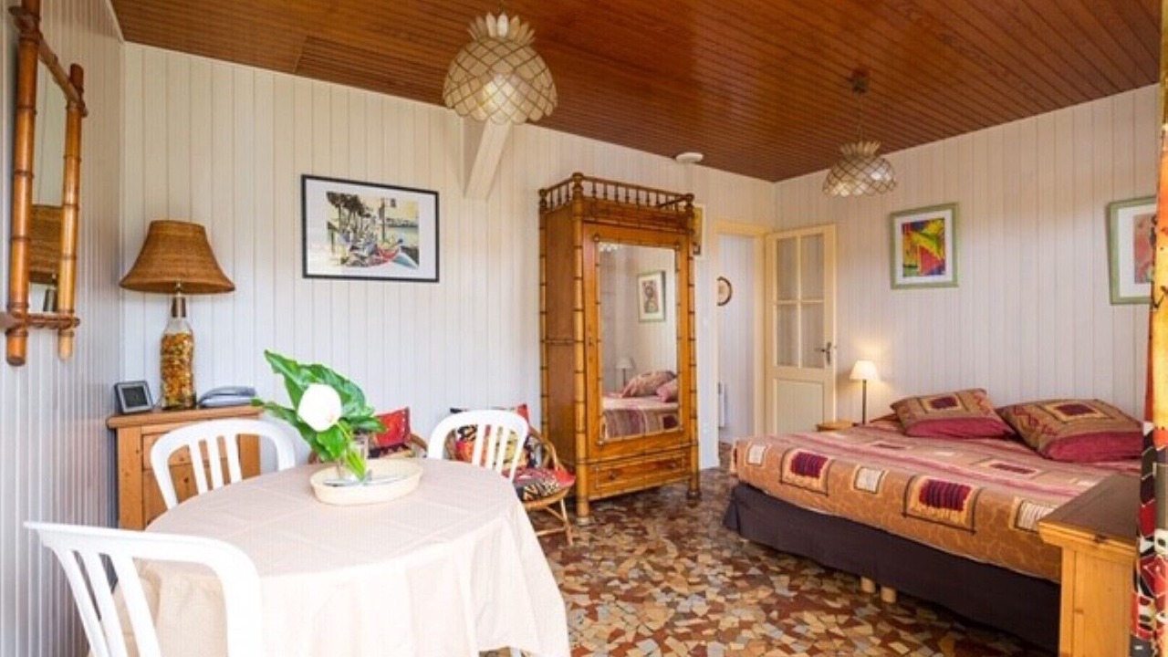 1.60 M bed + TV + armchairs + wifi, microwave / juicer / filter coffee maker or Nespresso available / electric hob / fridge / electric kettle.