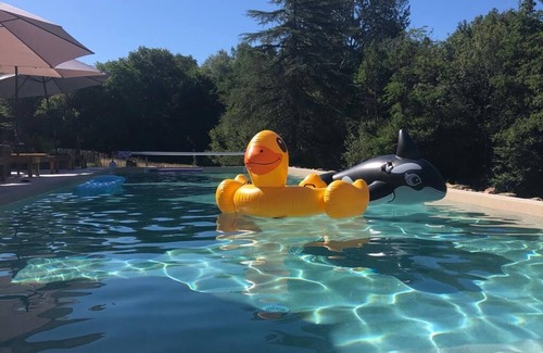 It offers a beautiful view of its 12 hectare park and has a heated outdoor swimming pool open in season (May/September). La Bastide Cardan is an ideal place to stay for travelers looking to recharge their batteries in a peaceful and green setting. The 5 rooms are tastefully decorated and have all modern comforts (air conditioning, TV, wifi, private bathroom and separate WC) the kitchen is equipped, the large living room can accommodate 15 people, a billiards room is available. your disposition.The property is surrounded by a large, lush garden with a stream and water features, where you can relax and enjoy the surrounding nature. The outdoor swimming pool is an ideal place to cool off on hot summer days (9am-8pm). A large courtyard equipped with a barbecue and an outdoor lounge allows you to read pétanque, grills, table tennis, table football or relax. La Bastide Cardan is also an ideal starting point for exploring the surrounding area, including the bastides of Guyenne, Bordeaux and its vineyards, Saint Emilion, the Arcachon basin and the historic towns of the region.