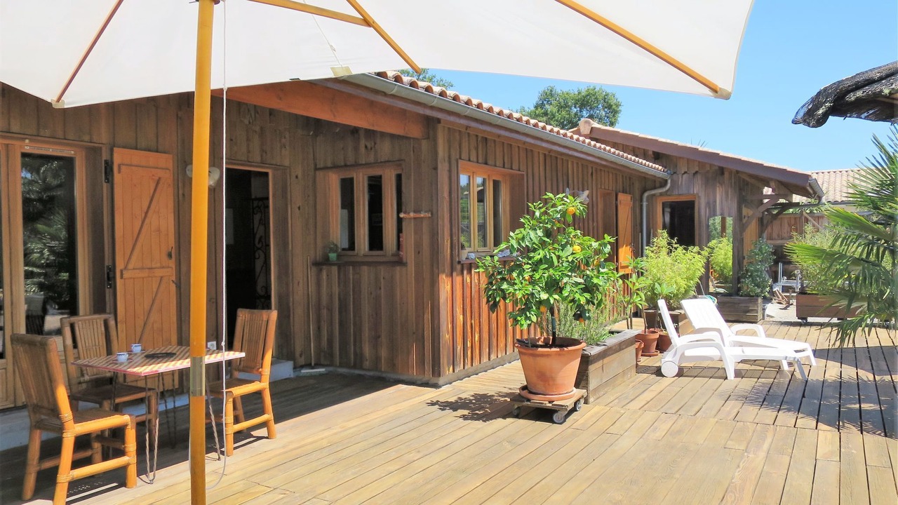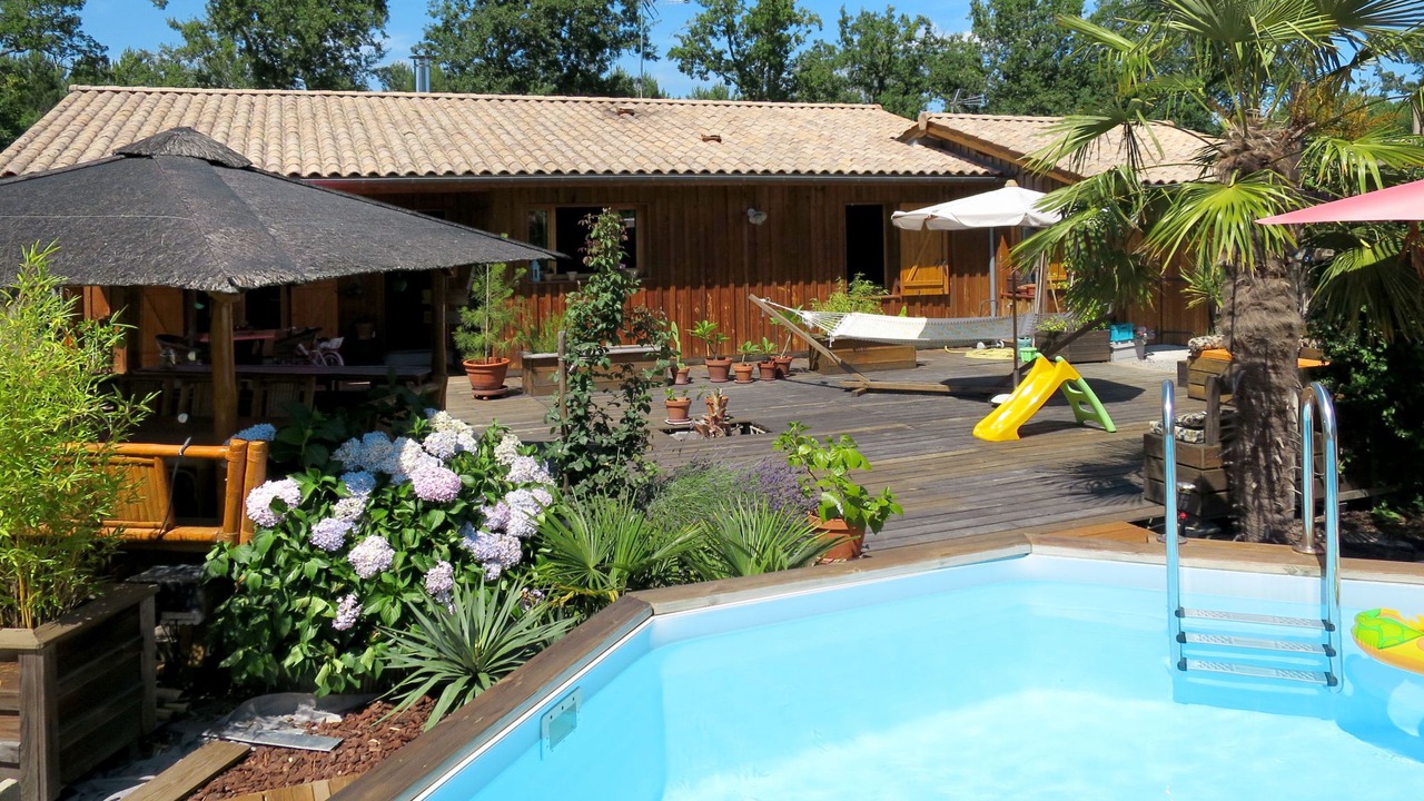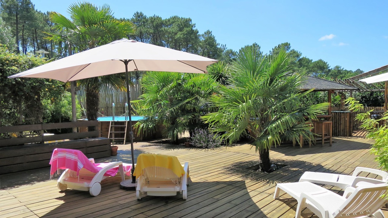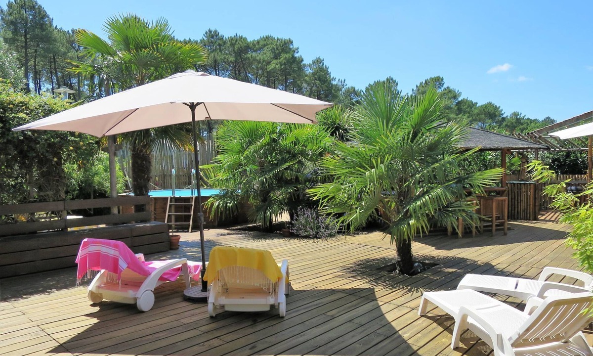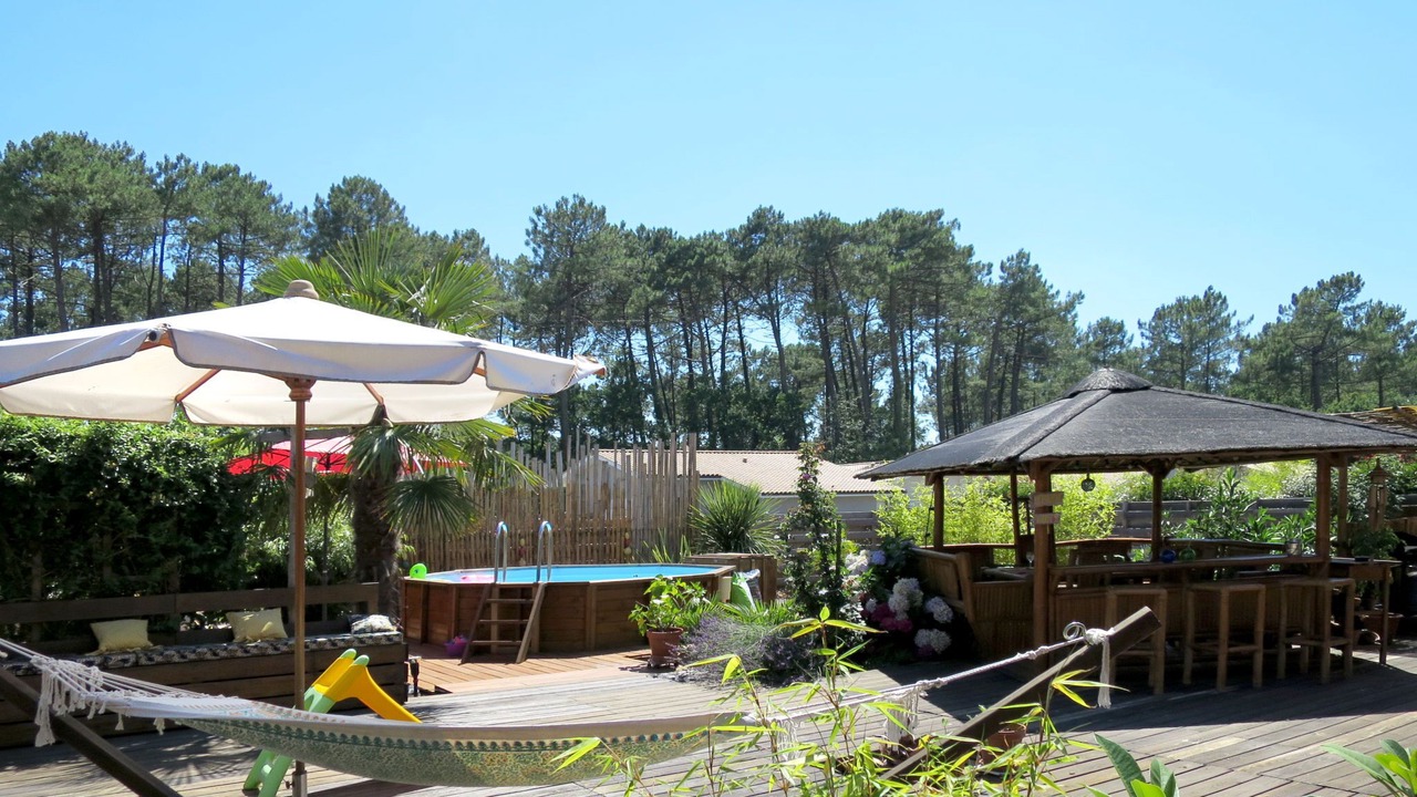 Single-family house "Ti Kaz Doudou", surrounded by trees. In the district of Ferron 1.5 km from the centre of Le Porge, 32 km from the centre of Cap Ferret, 50 km from the centre of Bordeaux, 9 km from the sea. Private: property 800 m2 (fenced) with trees, swimming pool (above ground) (4 m diameter, depth 130 cm, seasonal availability: 15.Jun. - 30.Sep.). Pergola, pool maintenance by the owner/gardener. Parking (for 2 cars) at the house. Shop 1.5 km, bus stop "Le ferron" 20 m, sandy beach "Le Porge Océan" 9 km.