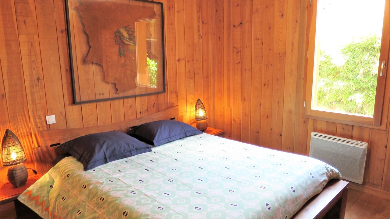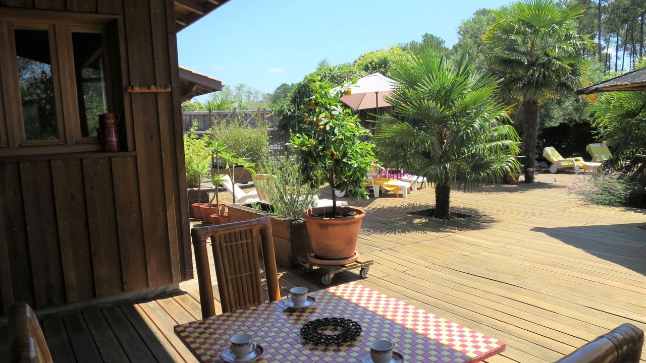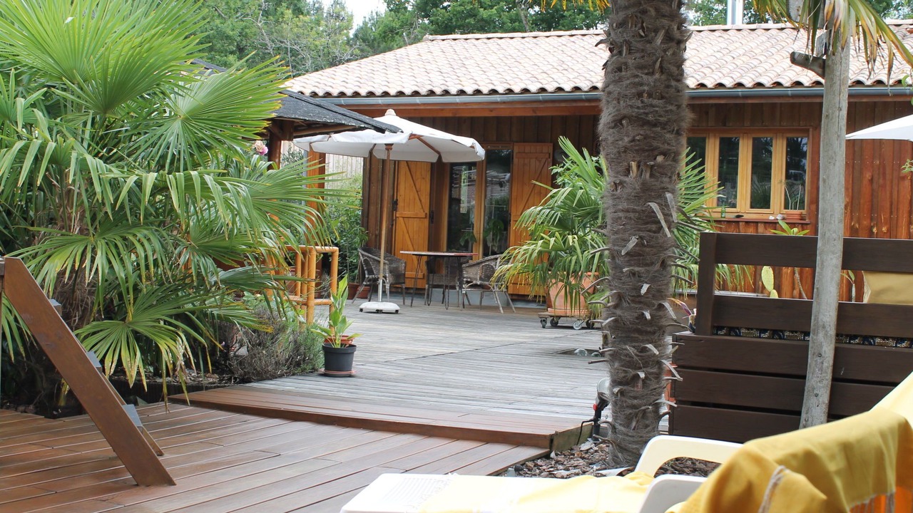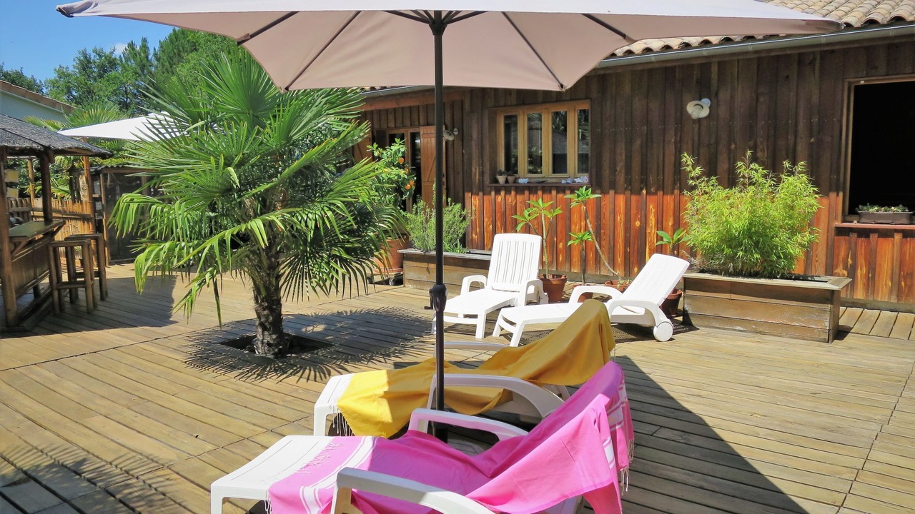 Single-family house "Ti Kaz Doudou", surrounded by trees. In the district of Ferron 1.5 km from the centre of Le Porge, 32 km from the centre of Cap Ferret, 50 km from the centre of Bordeaux, 9 km from the sea. Private: property 800 m2 (fenced) with trees, swimming pool (above ground) (4 m diameter, depth 130 cm, seasonal availability: 15.Jun. - 30.Sep.). Pergola, pool maintenance by the owner/gardener. Parking (for 2 cars) at the house. Shop 1.5 km, bus stop "Le ferron" 20 m, sandy beach "Le Porge Océan" 9 km.